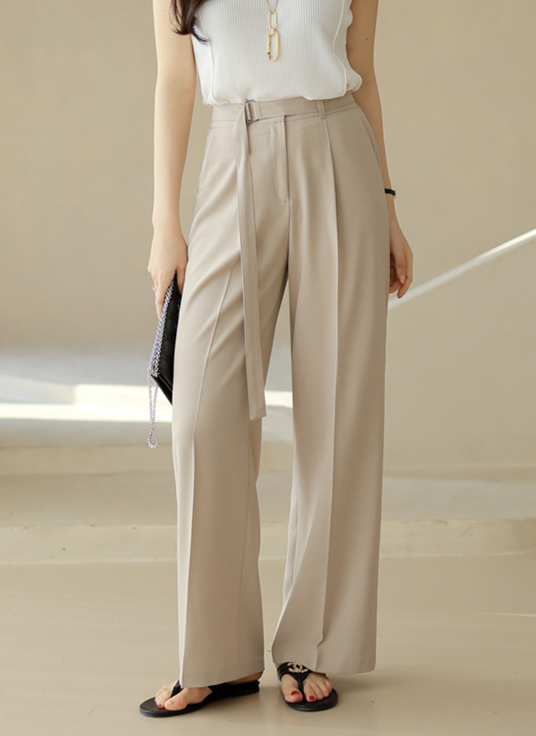 네이블 백 밴딩 벨트SET 원턱 세미 와이드 일자 슬랙스 팬츠
