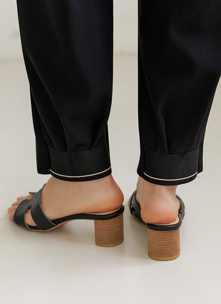 밑단 뒷부분에 밴딩이 있어 세련된 핏을 완성해주며