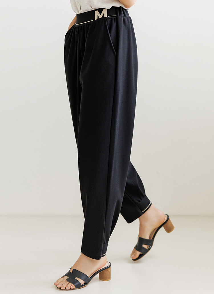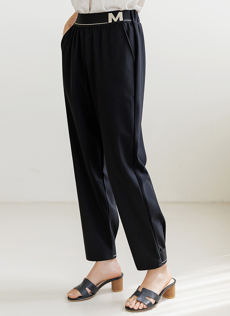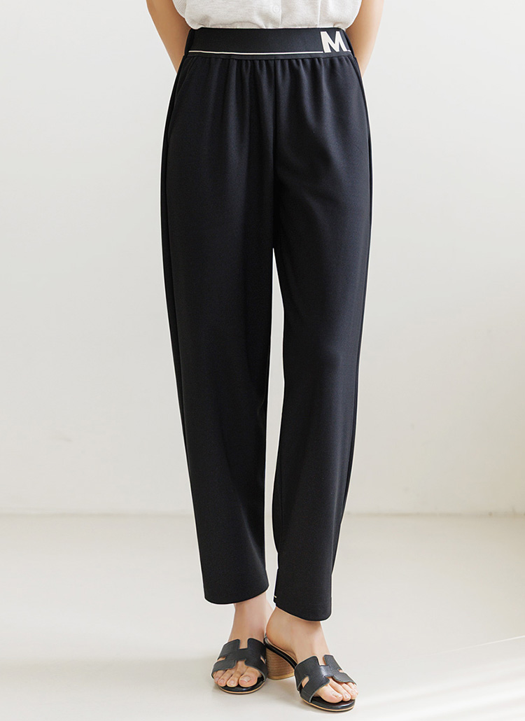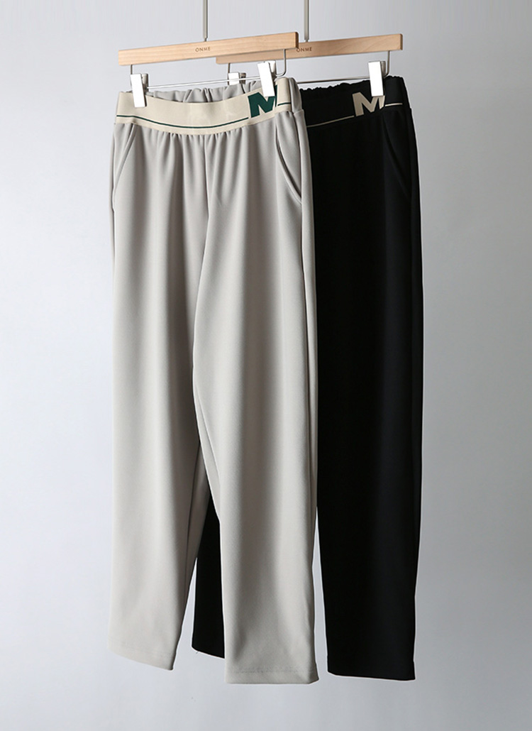 [Theonme] 엠키 레터링 배색 밴딩 세미일자 슬랙스 팬츠