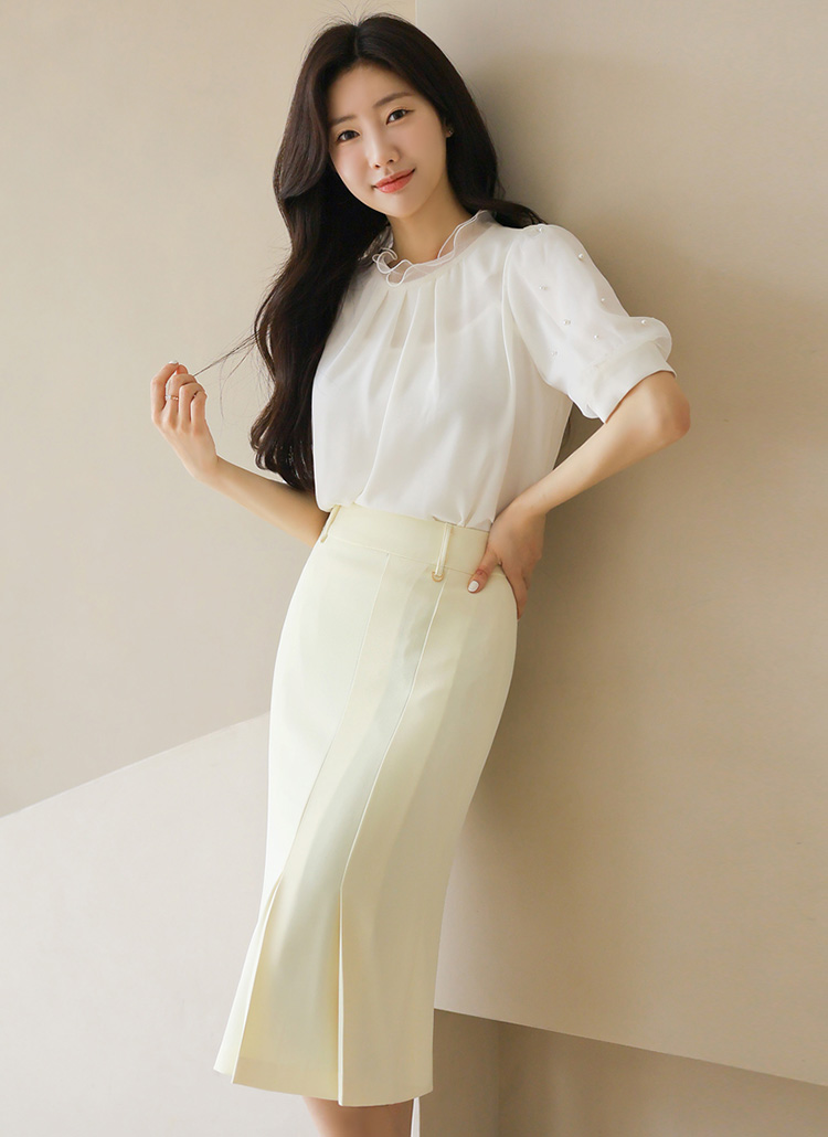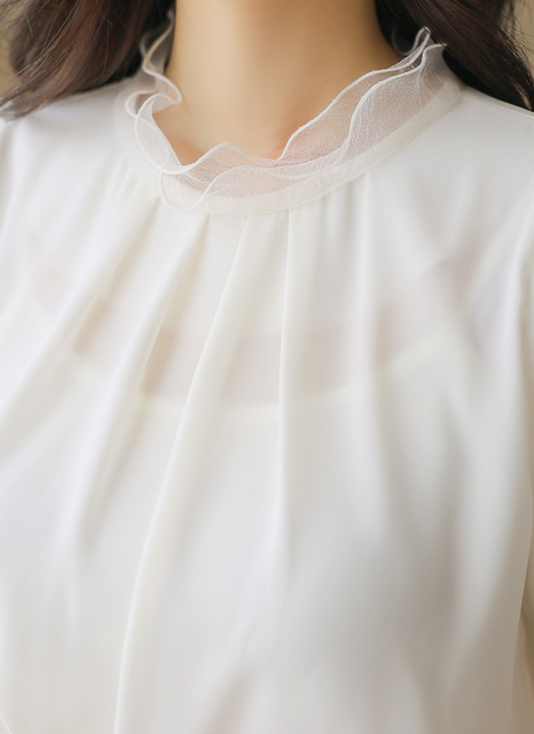 시스루 소재의 러플넥이 우아한 블라우스에요 :)