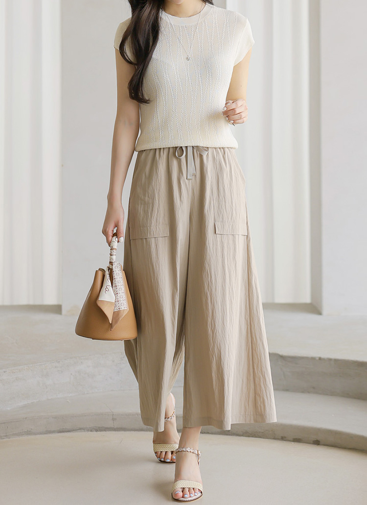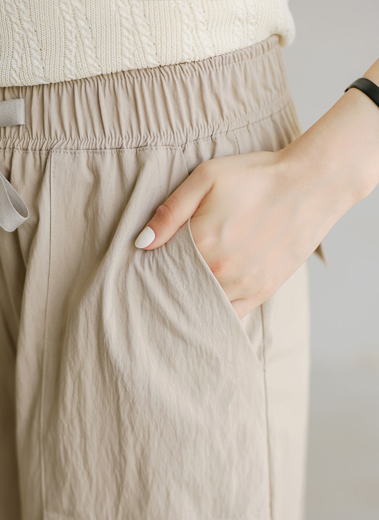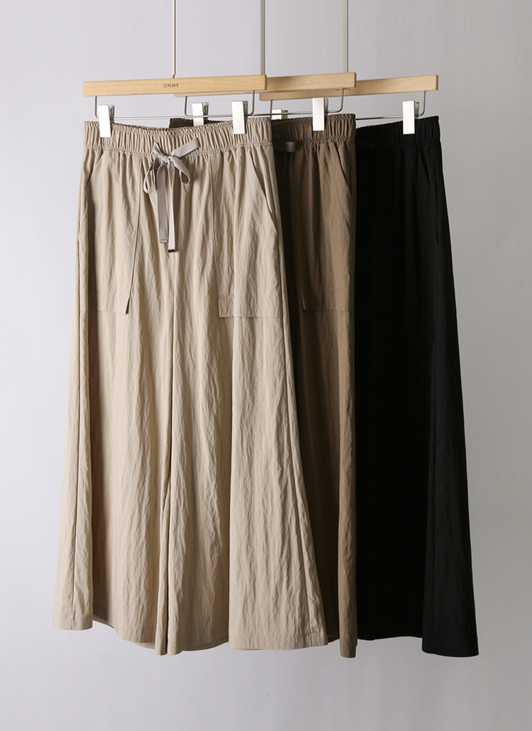 도에츠 부드러운 사락사락 플레어 와이드 밴딩 팬츠