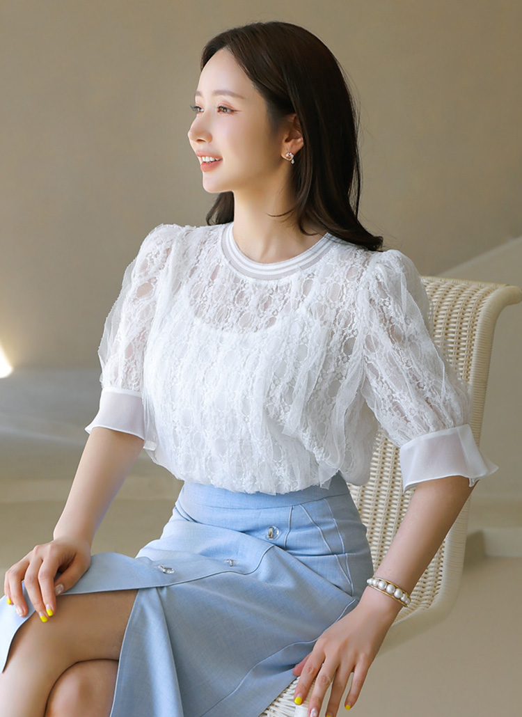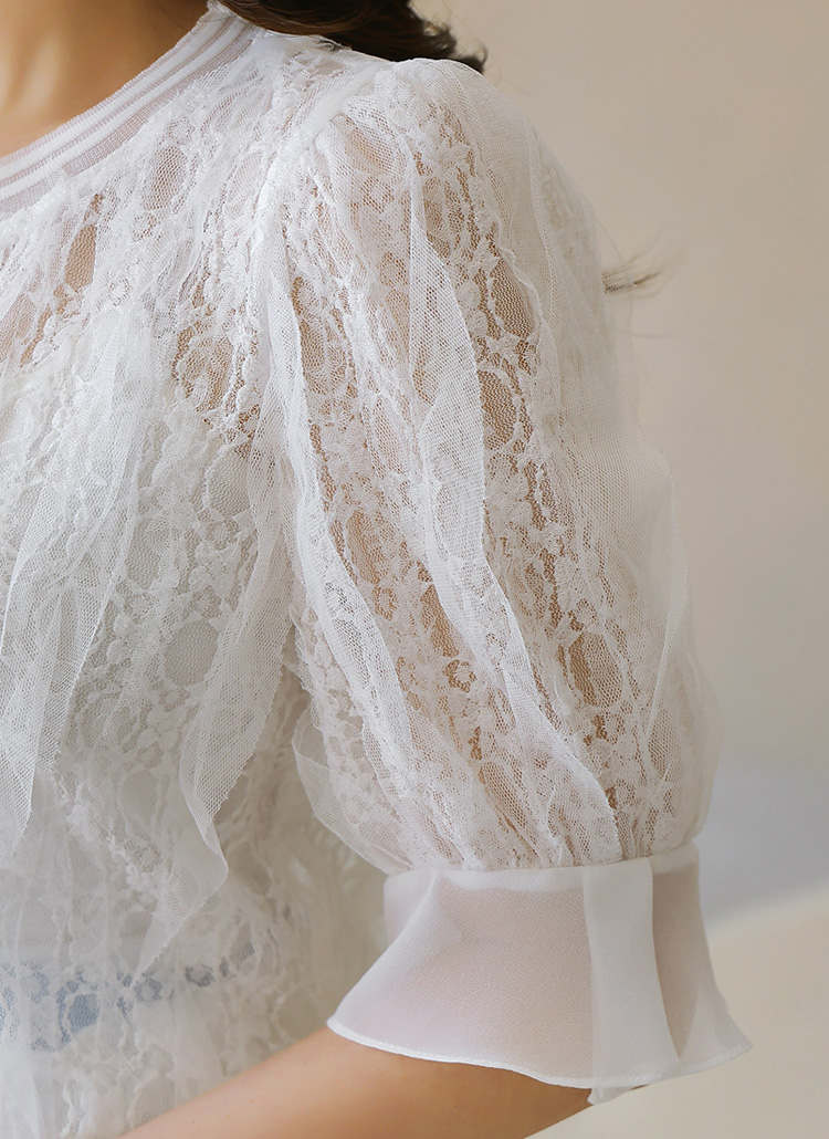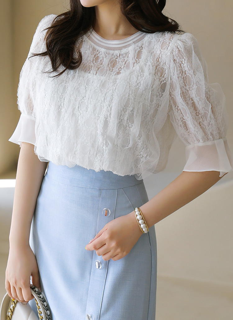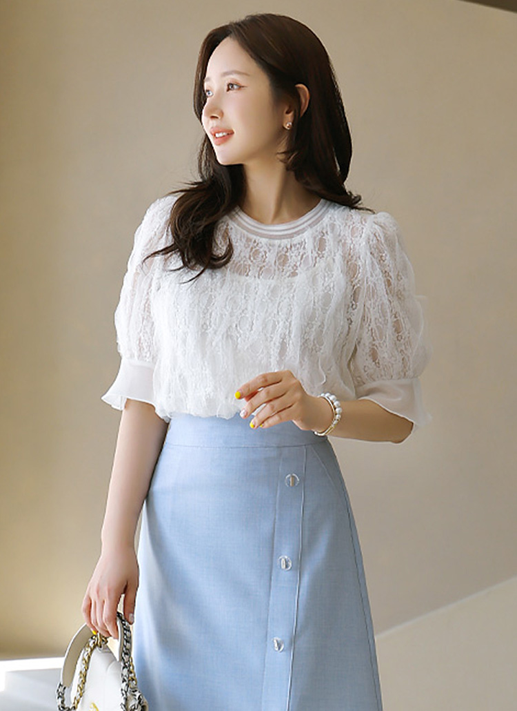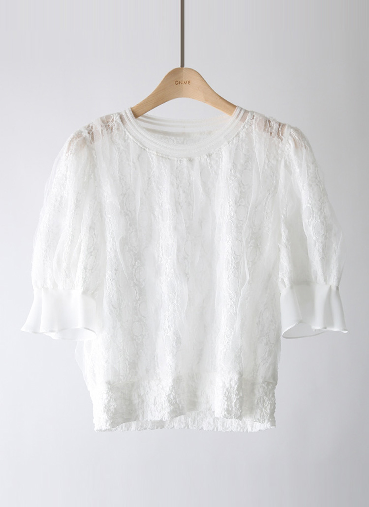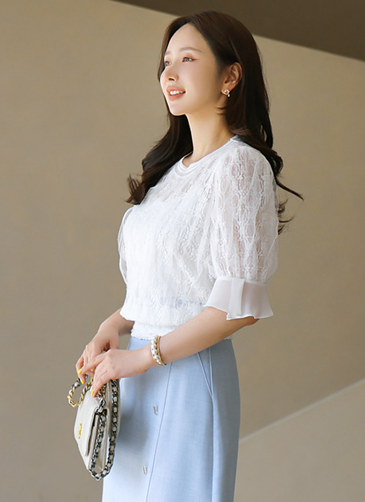 [LouisAngel] 아이렌 써클 플라워 패턴 프릴 라인 레이스 블라우스