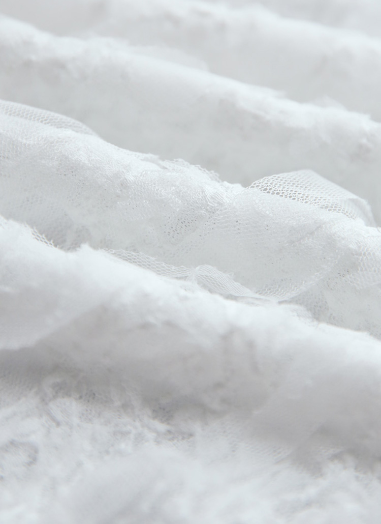 시스루한 프릴 라인을 매치해 입체적인 텍스쳐가 주는 고급스러운 멋까지 더해진