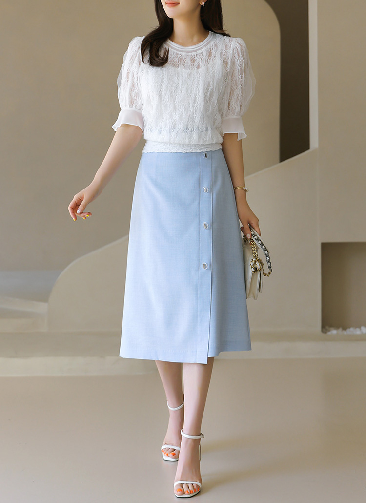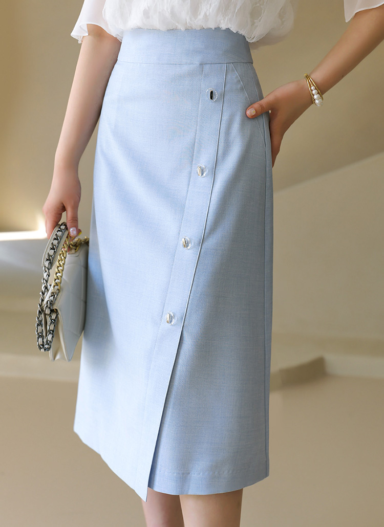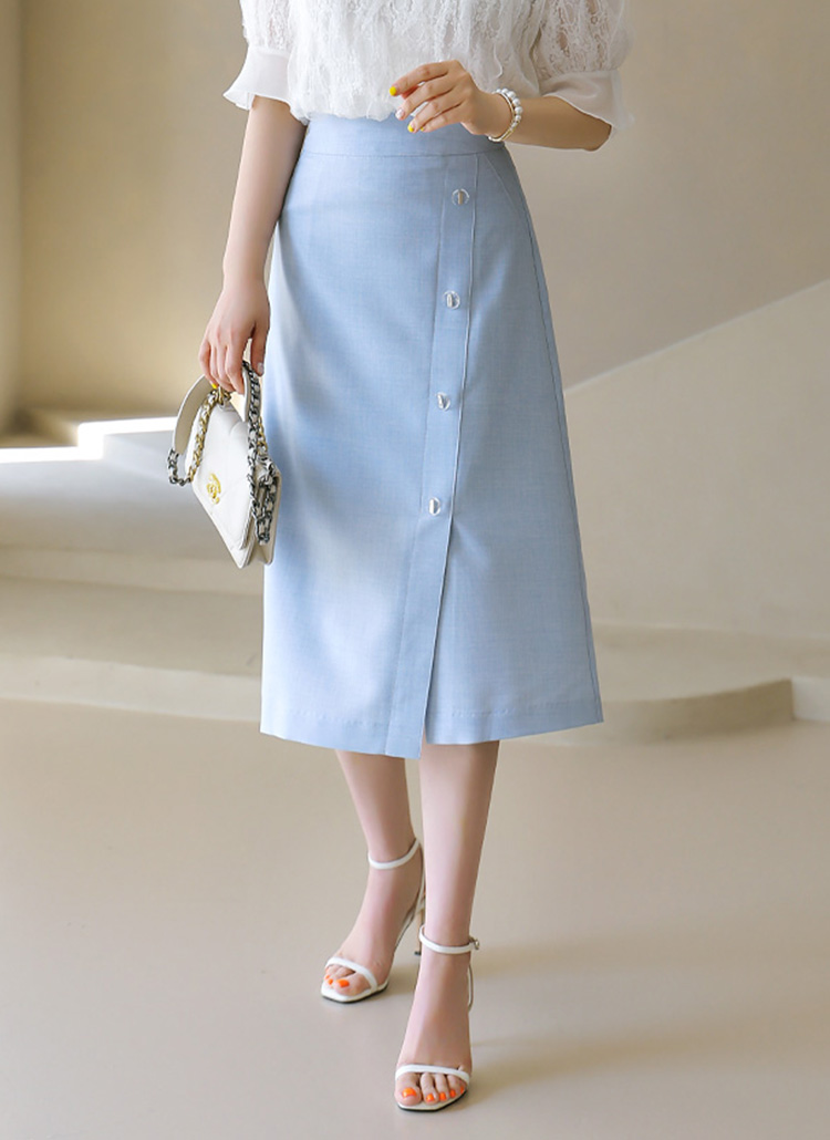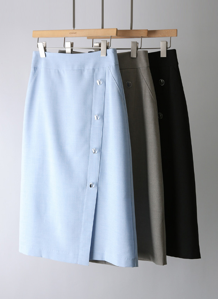 투명한 버튼이 포인트인 세미 L라인 미디 스커트에요 :)