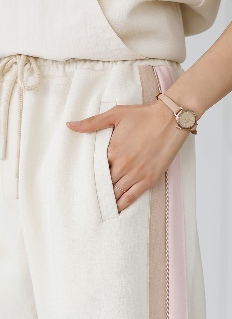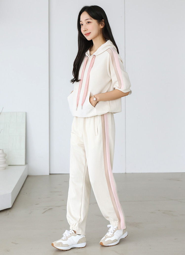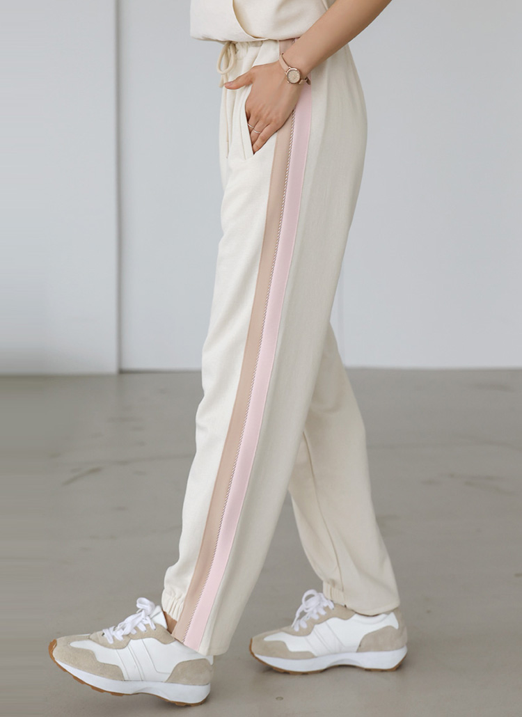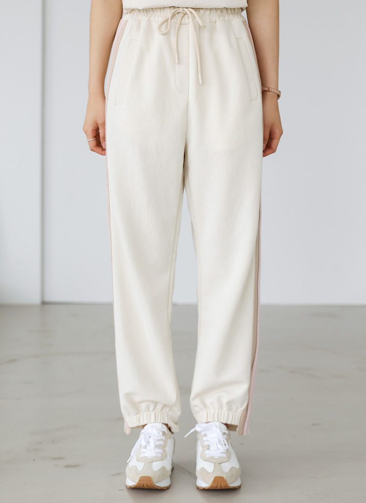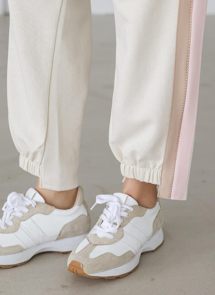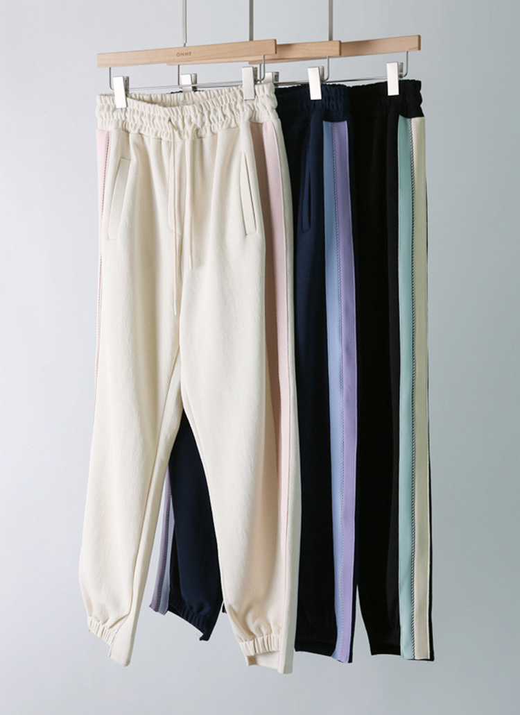 [Theonme] 레튼 사이드 배색 언발 조거 밴딩 팬츠