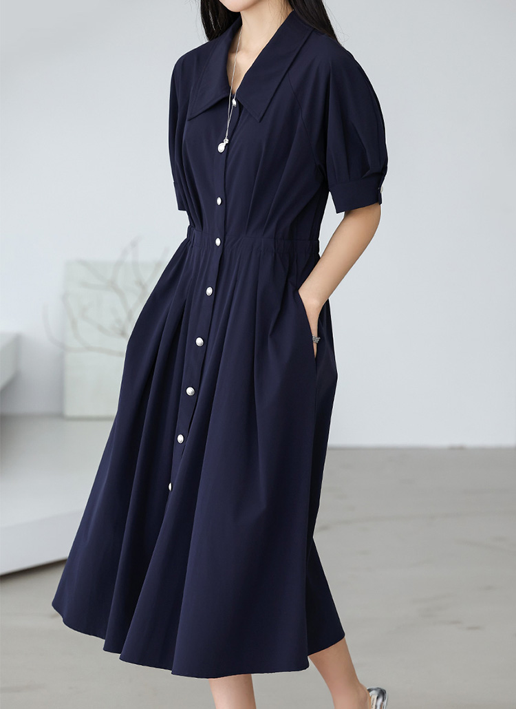 [Theonme] 젤로니 퍼프소매 실버버튼 카라 플레어 원피스
