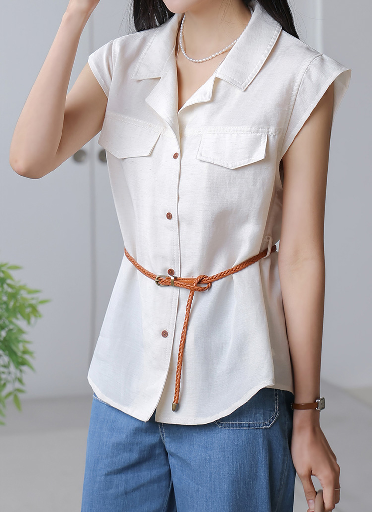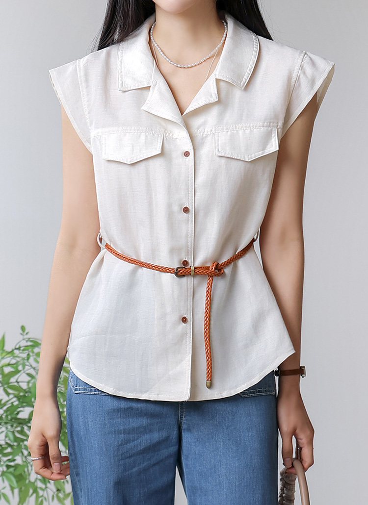 [Theonme] 꼬임 벨트set 날개 캡소매 썸머 나시 블라우스