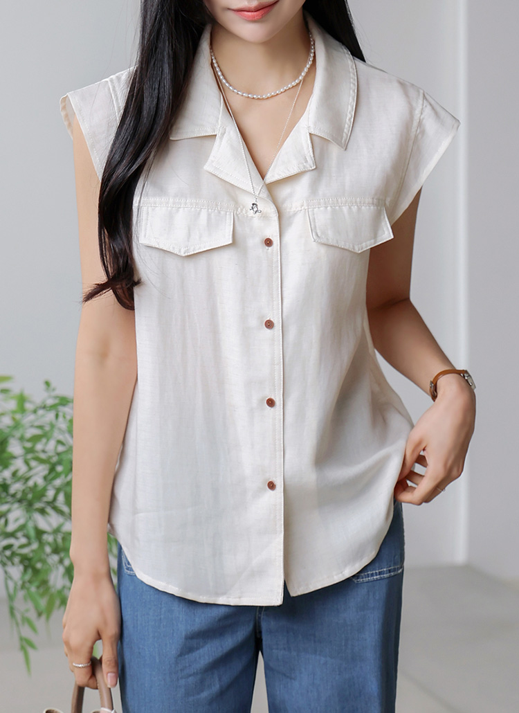 캡소매가 체형을 커버해주는 썸머 나시 블라우스에요 :)