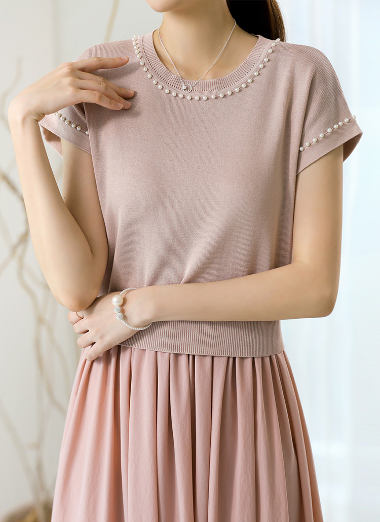 부드러운 니트 소재에 진주 라인이 더해져 네클리스를 한 듯한 효과로