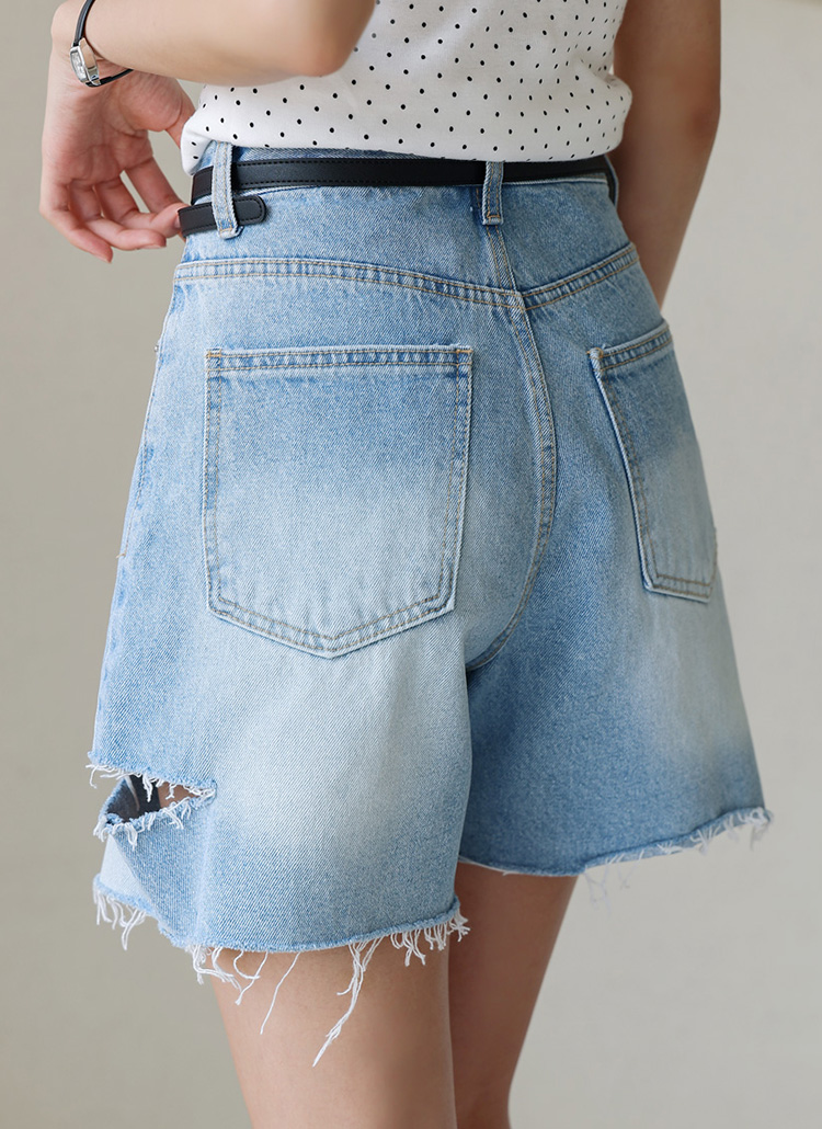 [Theonme] 사이드 구제 트임 컷팅 4부 데님 반바지 팬츠