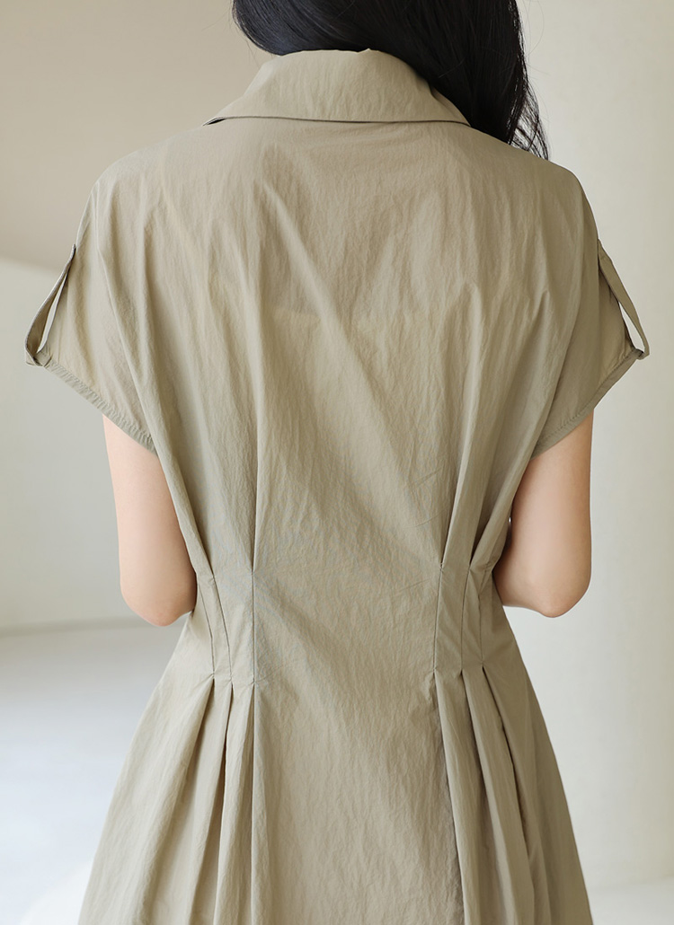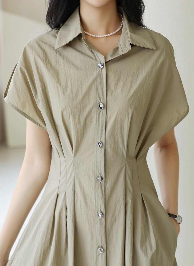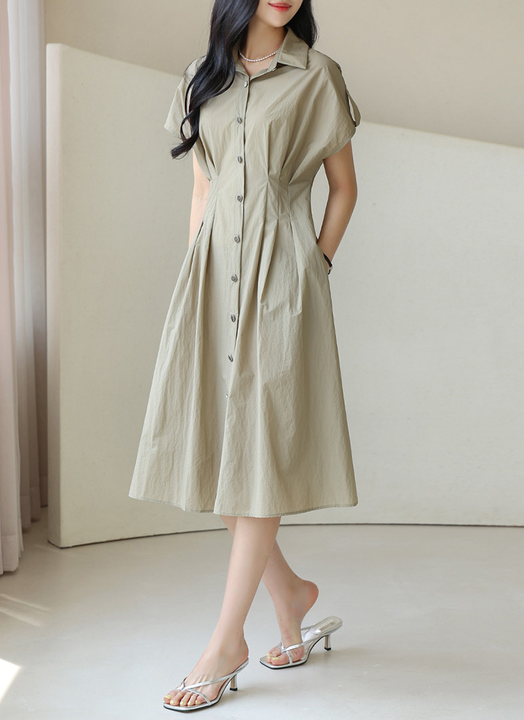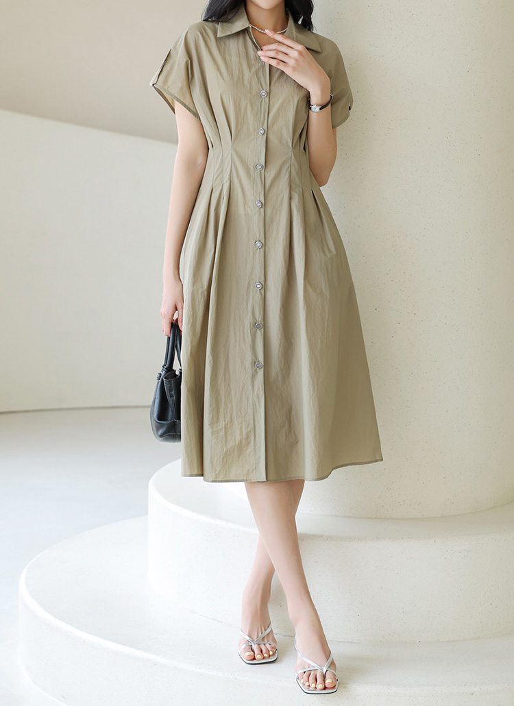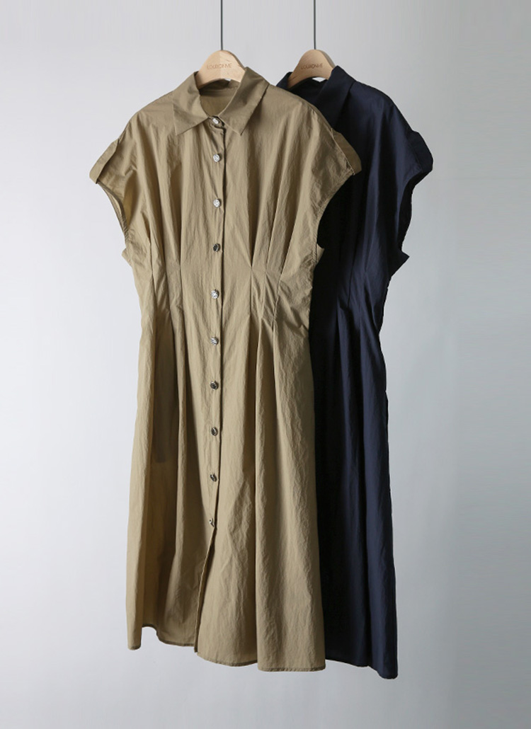 [Theonme] 루벨 핀턱 페미닌라인 견장 드롭 소매 셔츠 플레어 원피스