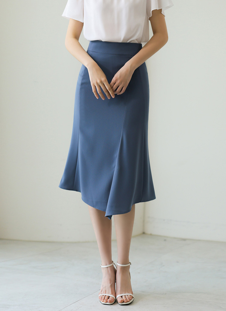 레니모 언발란스 밑단 절개 트임 머메이드 라인 롱 스커트