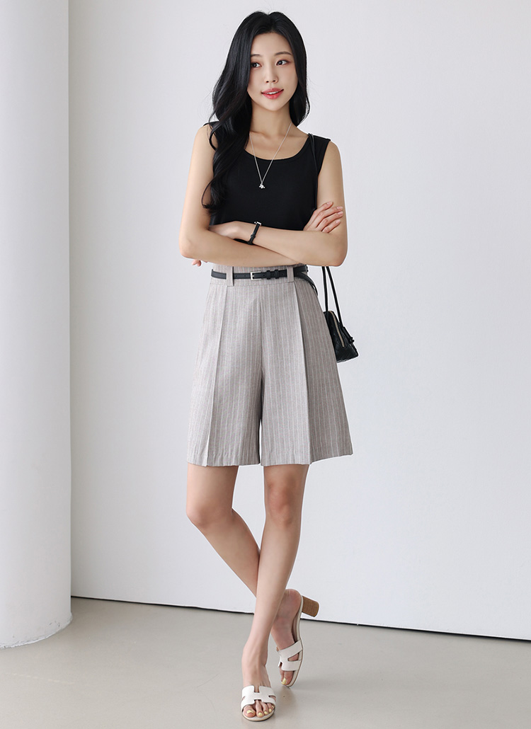 [Theonme] 로에디 썸머 스트라이프 4부 반바지 슬랙스 팬츠