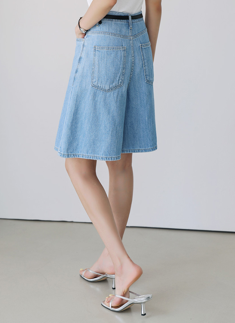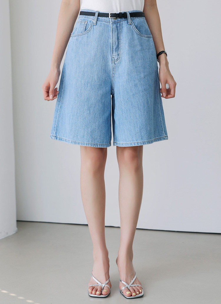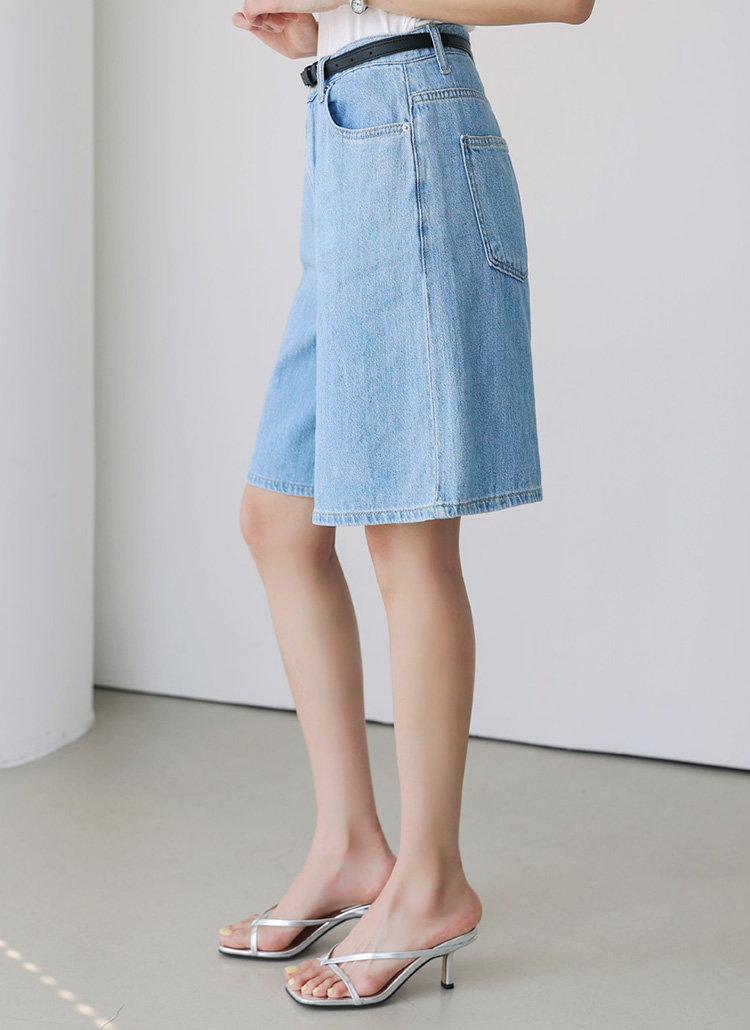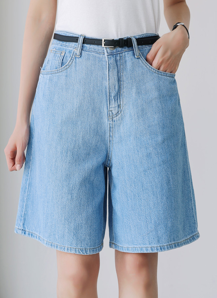 [Theonme] 베이블 와이드 버뮤다 5부 데님 반바지 팬츠