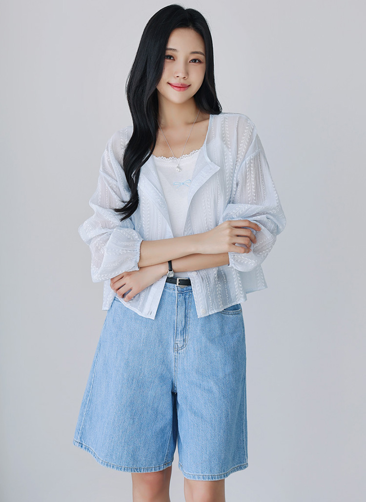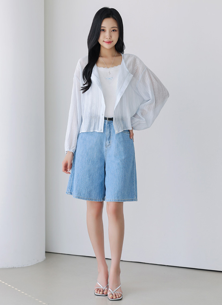 롱하게 연출해주는 버뮤다 데님 반바지에요 :)