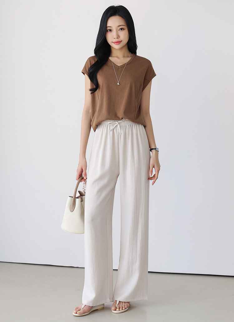 [Theonme] 리에타 쿨 후들후들 썸머 밴딩 와이드 팬츠