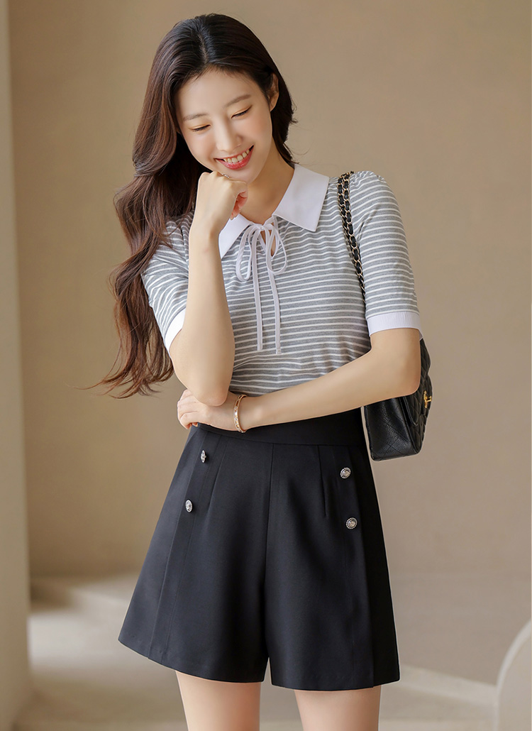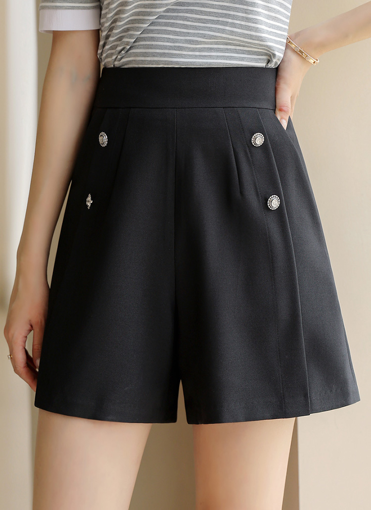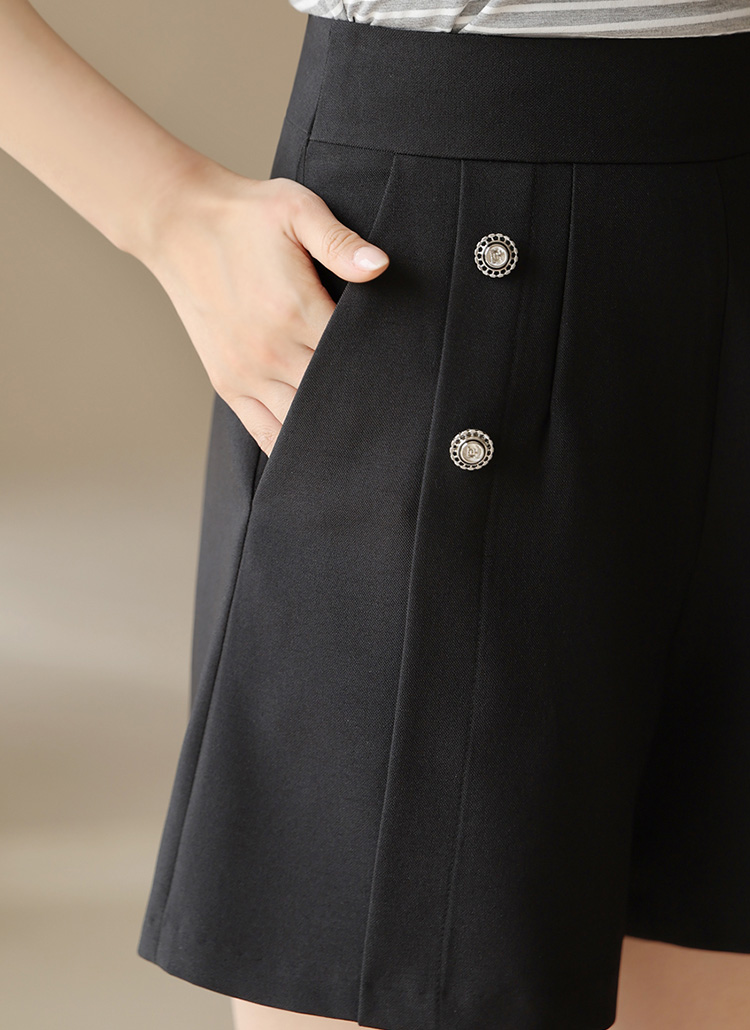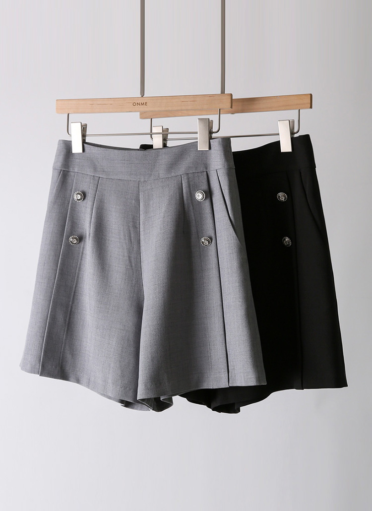 듀엘즈 더블 실버버튼 핀턱 슬랙스 반바지 팬츠