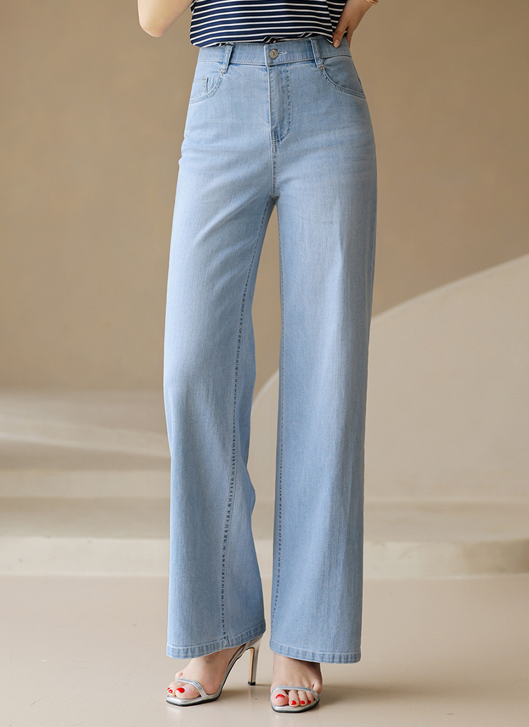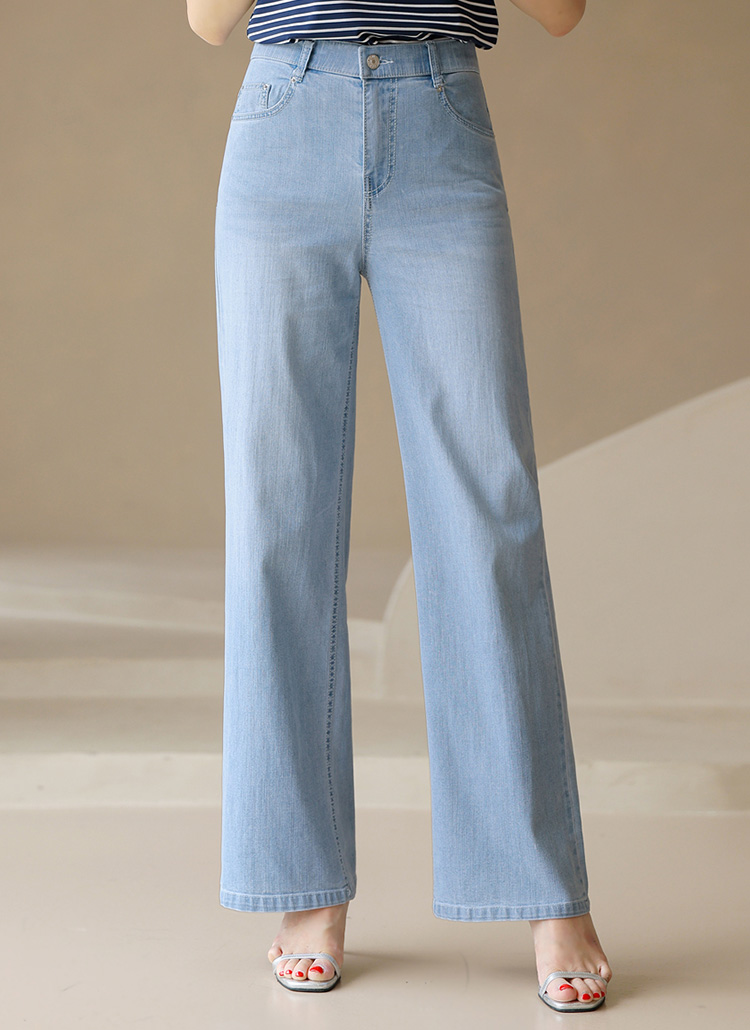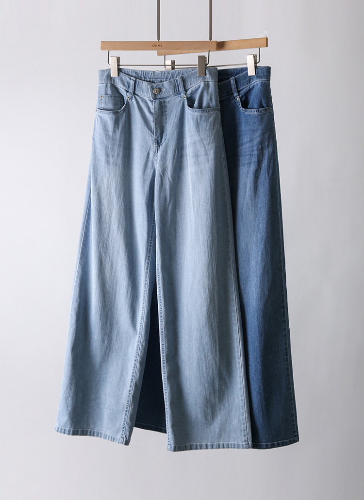 네이플 쿨링 원사 쫀득 스판 히든밴딩 세미와이드 데님 팬츠