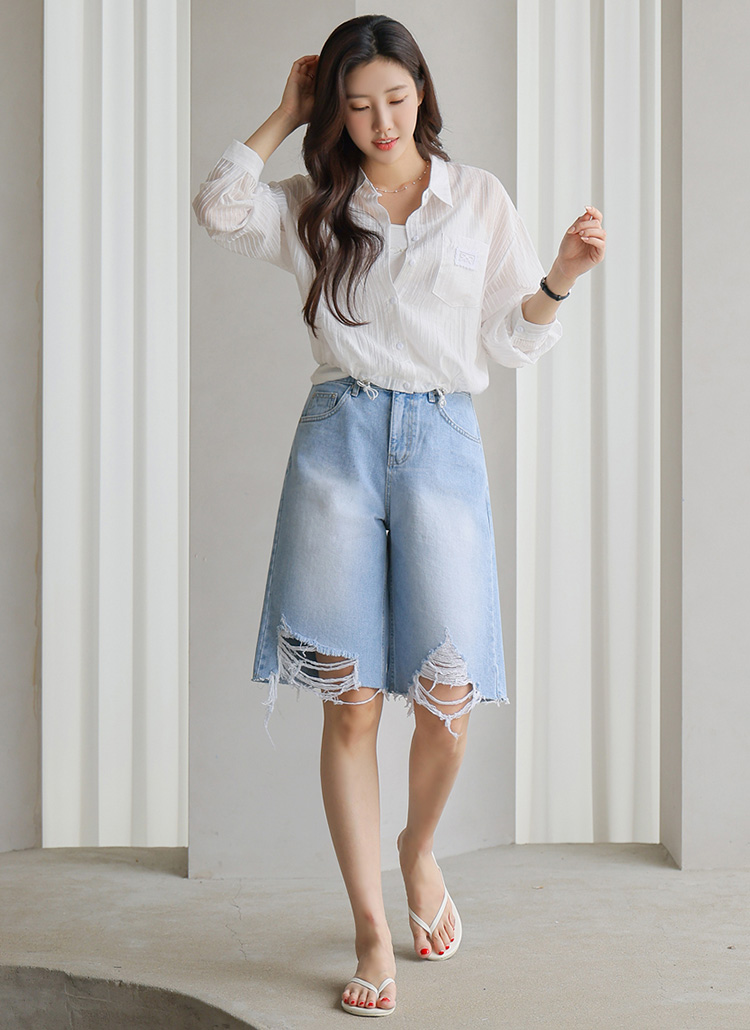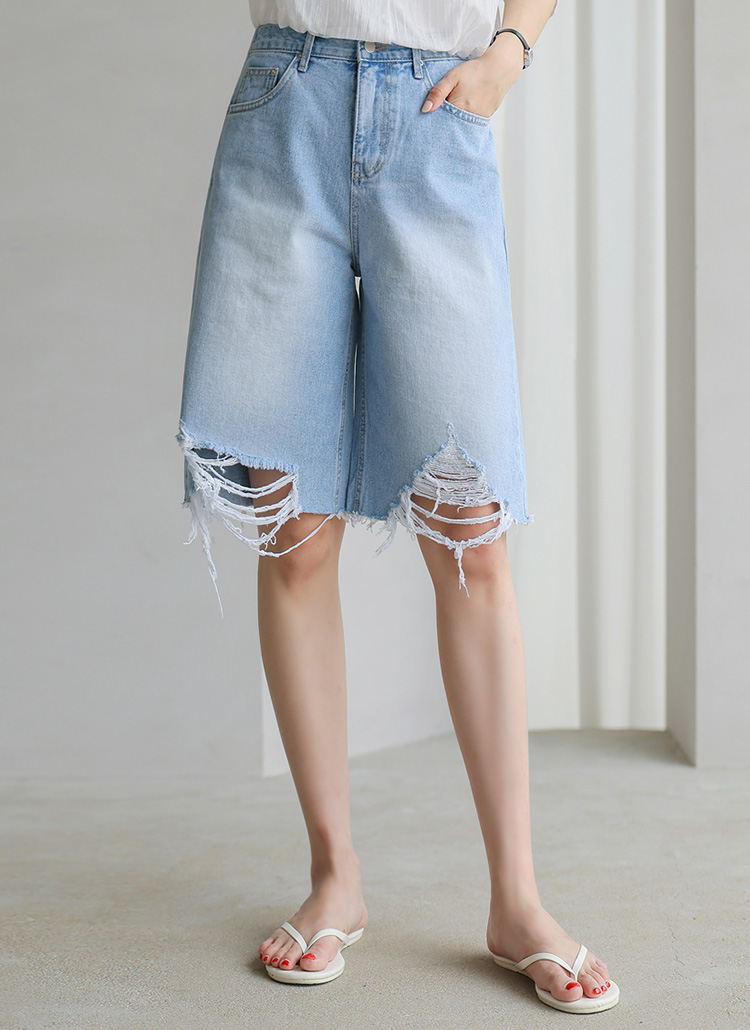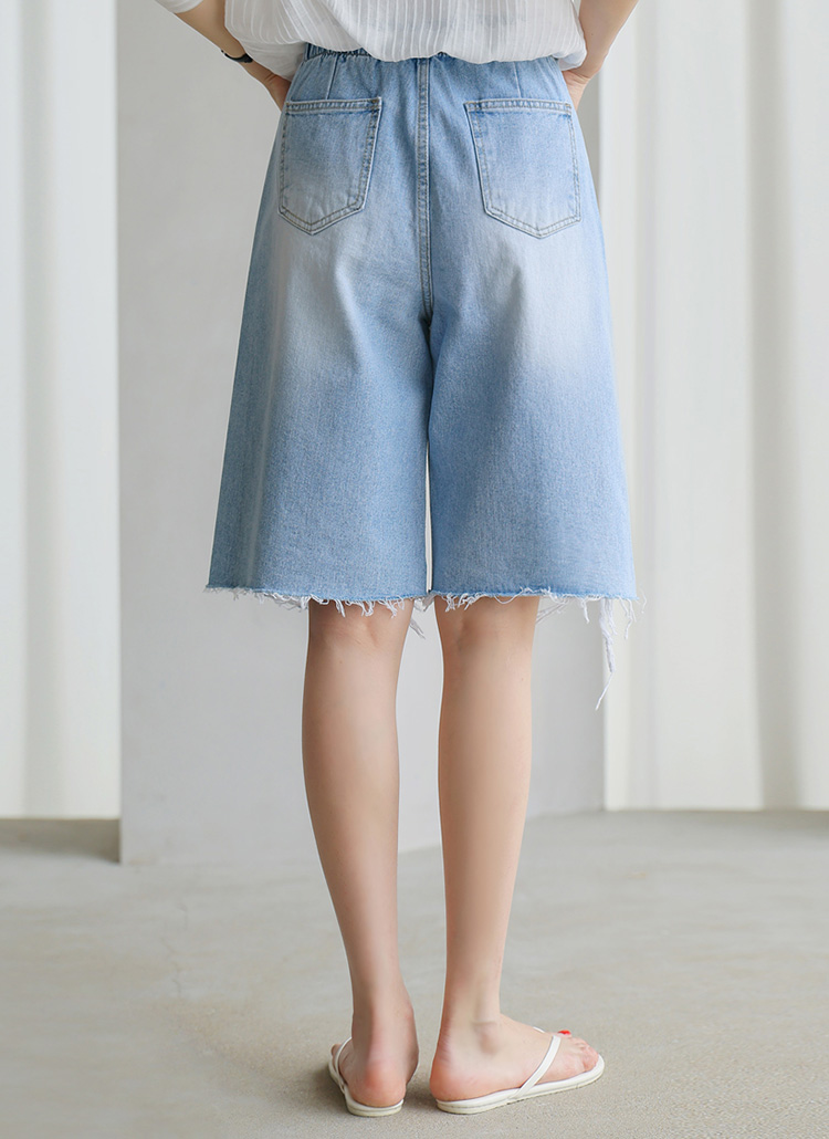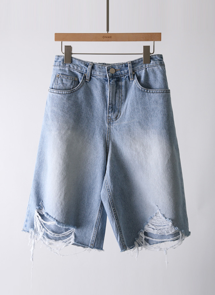 루에블 밑단 구제 트임 버뮤다 5부 데님 반바지 팬츠