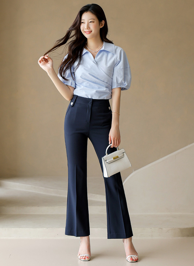 랩 카라넥과 핀턱 디테일이 돋보이는 슬림라인 블라우스에요 :)