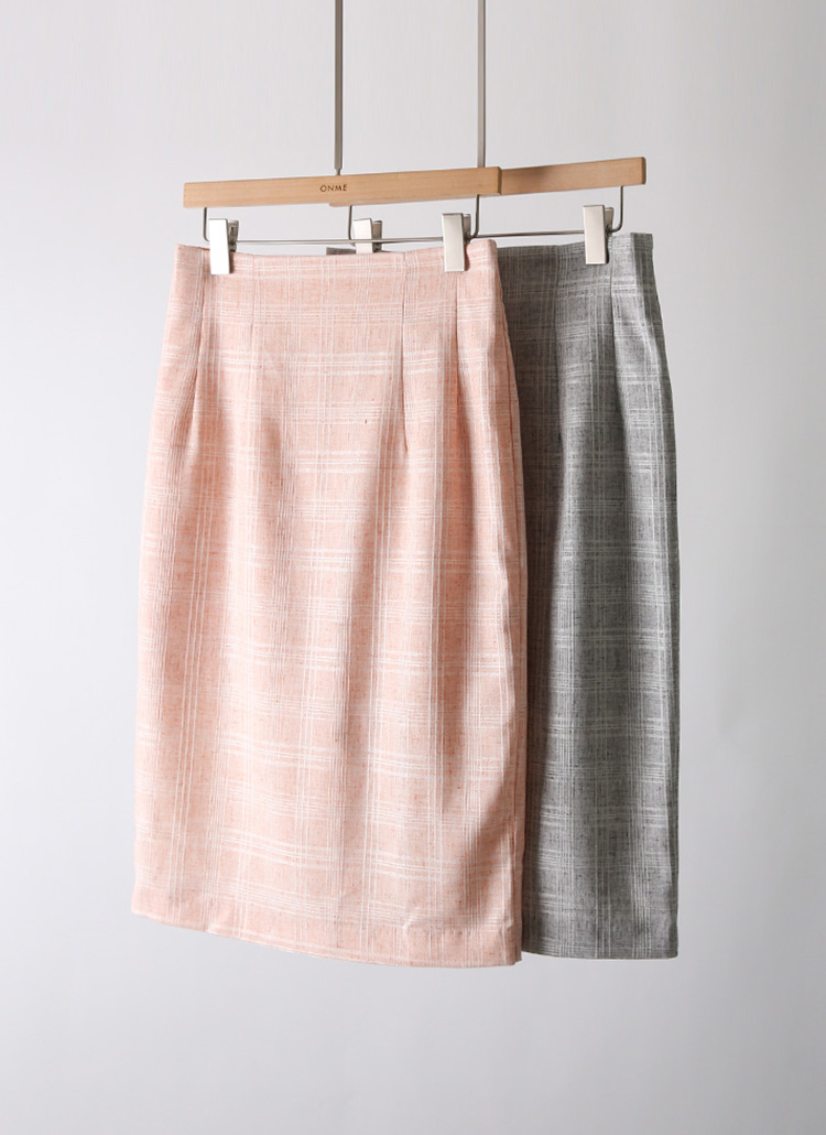 썸머 체크 슬림 H라인 미디 스커트