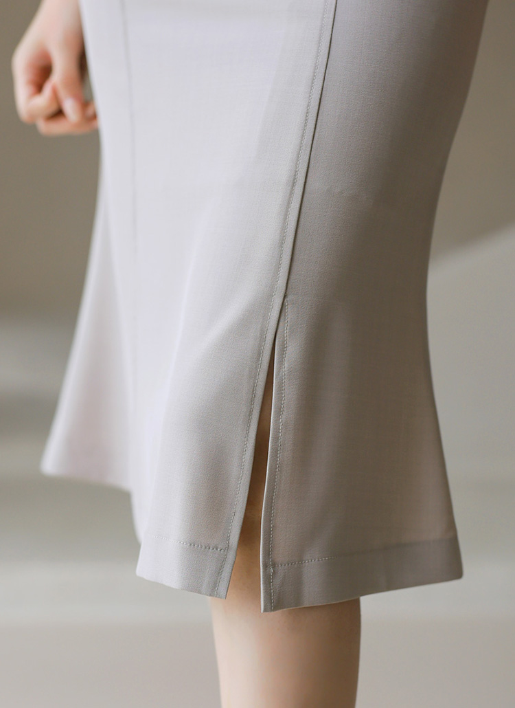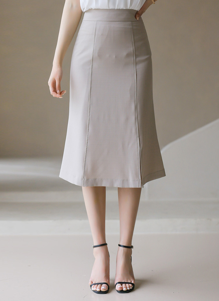 쥬에르 트임 절개 스판 머메이드 라인 스커트