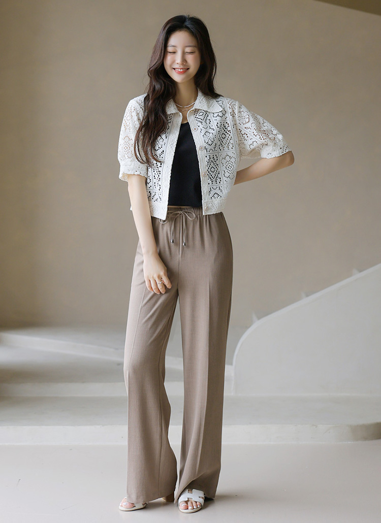 리에블 찰랑 레이온 내추럴 스트링 와이드 슬랙스 팬츠