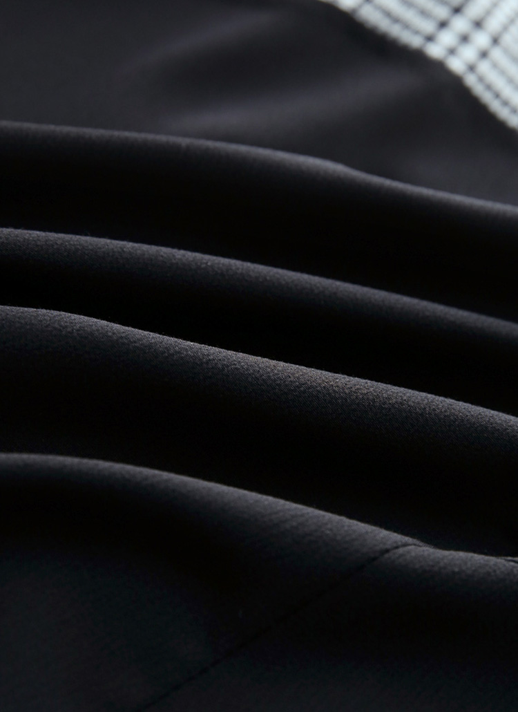 체크 배색과 페플럼 라인으로 여성스러움을 강조한