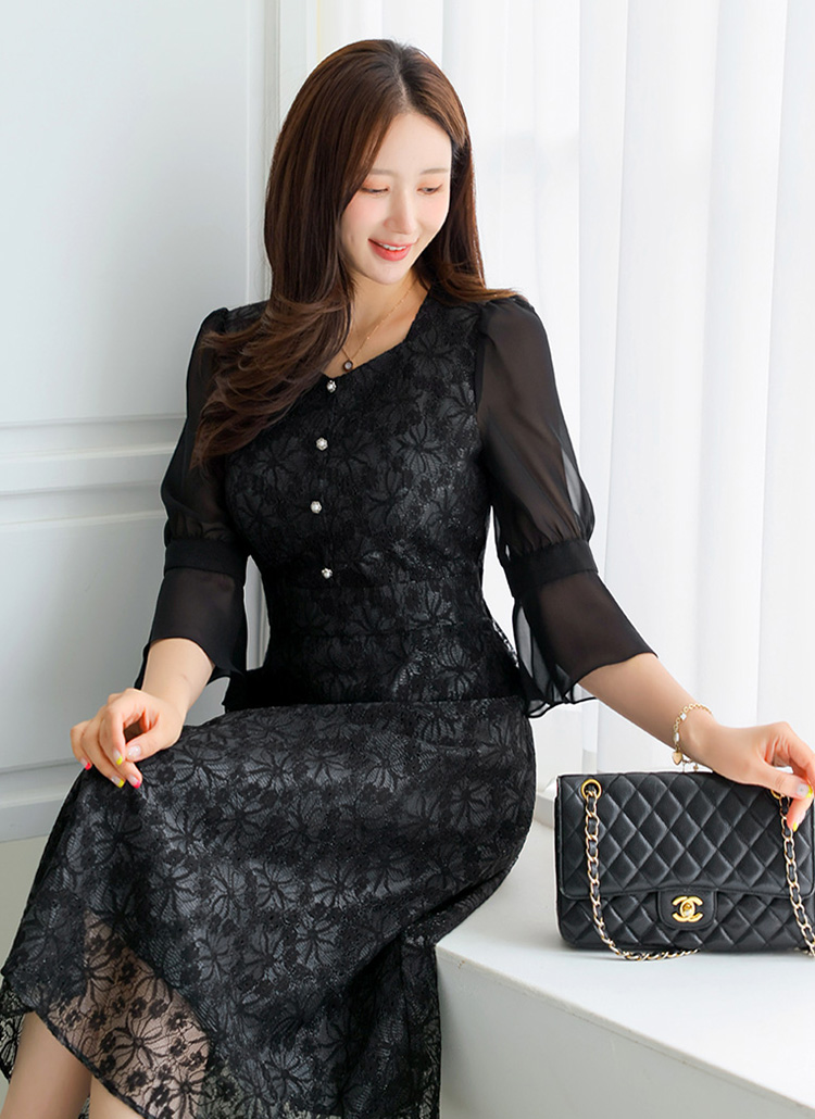 소매와 밑단은 시스루하게 표현되어 실루엣을 보다 여리여리~ 하게 연출해준답니다