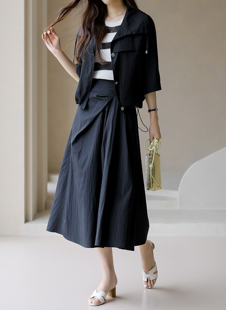 부드럽고 가벼운 나일론 소재의 플레어 스커트에요 :)