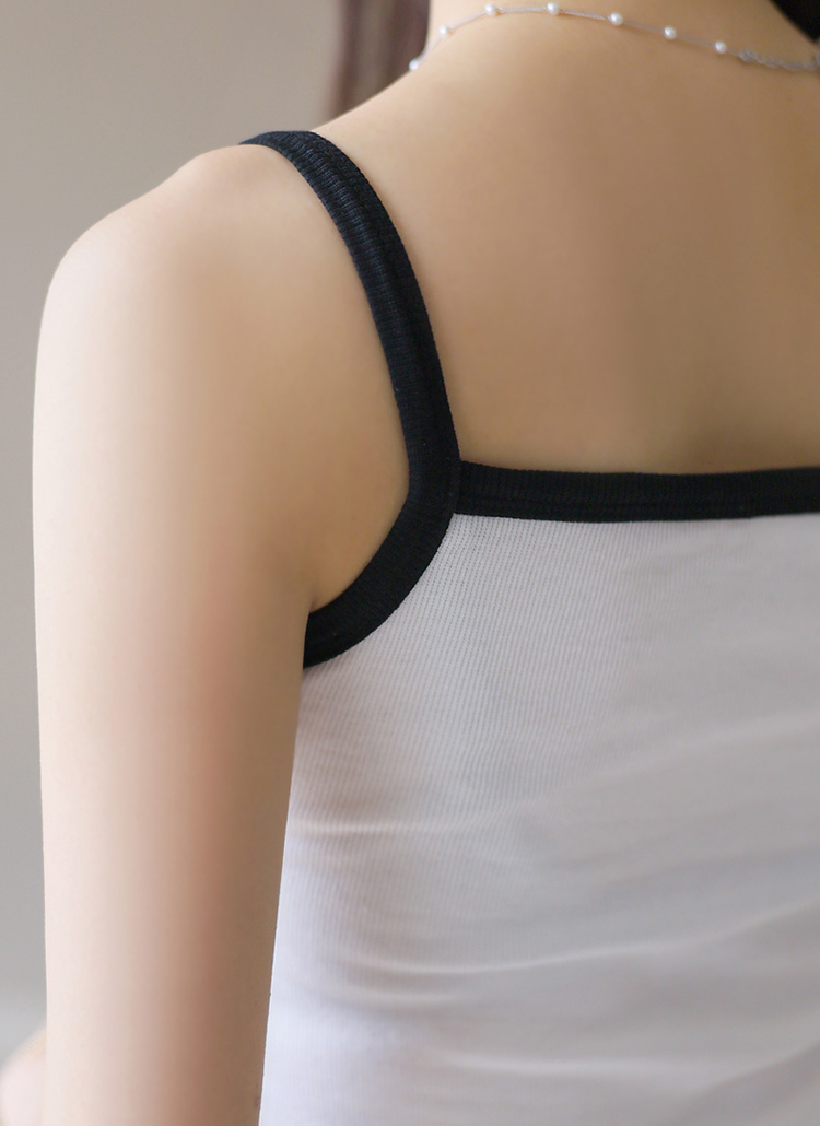 슬림핏의 잔골지 원단으로 바디 라인을 예쁘게 살려주면서