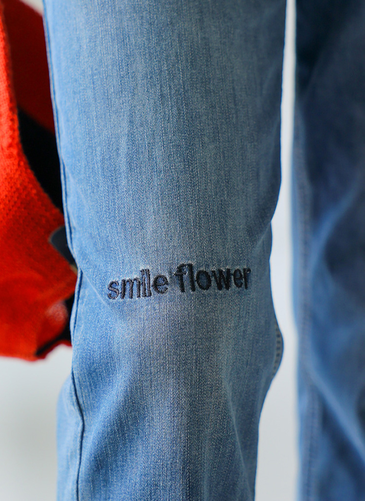 뒷 포켓에도 스마일 플라워 자수가 있어