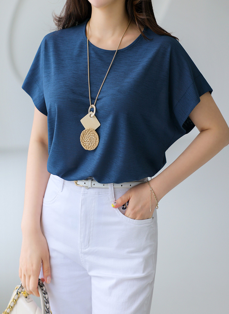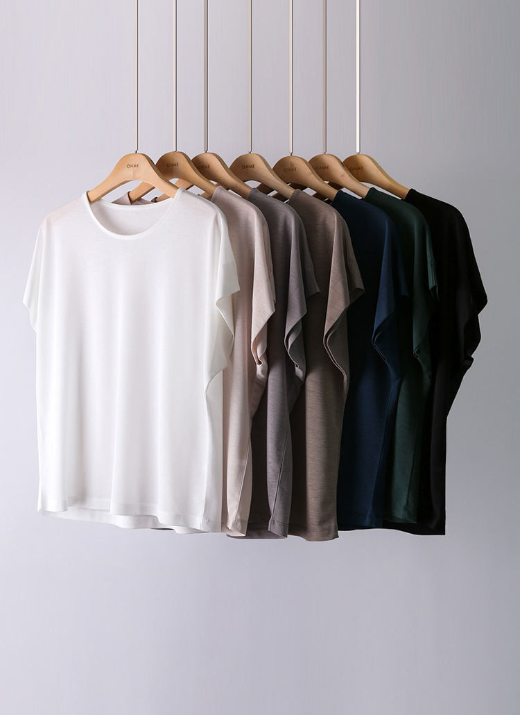 데이링 심플 베이직 쿨 슬라브 캡소매 가오리핏 티셔츠