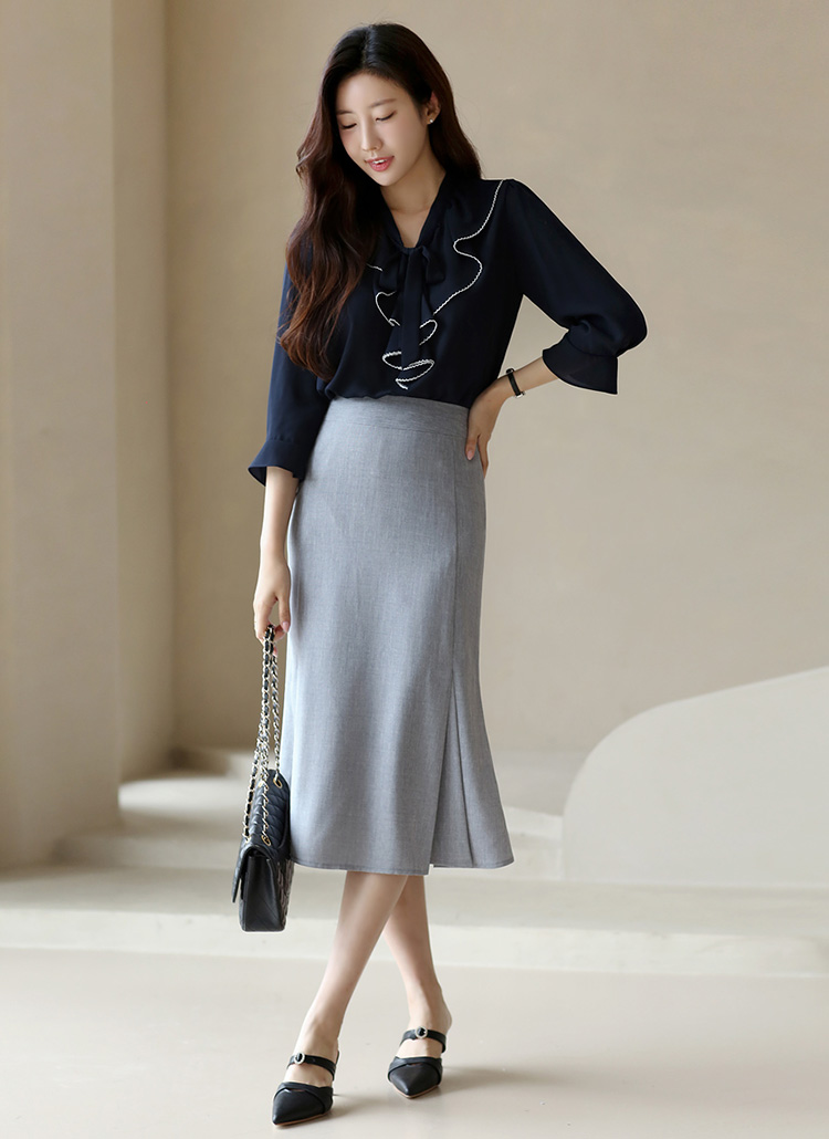 세련된 핀턱 주름이 매력적인 플레어 머메이드 스커트에요 :)