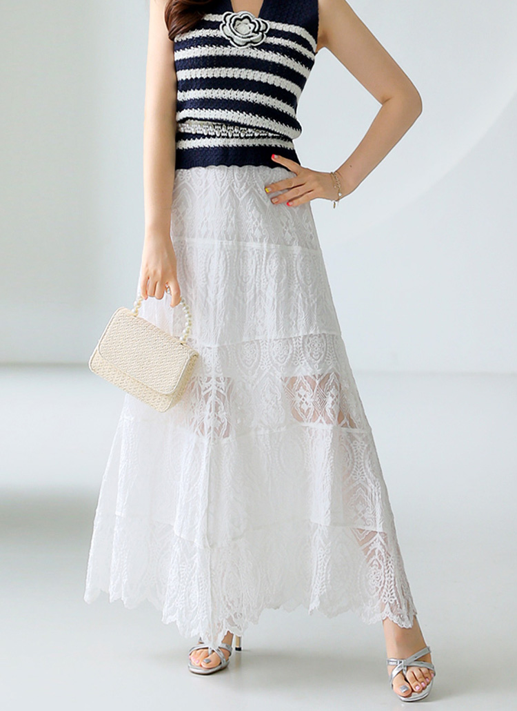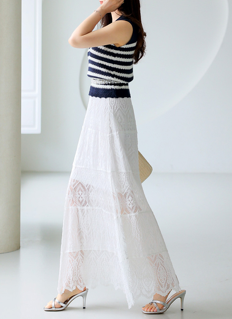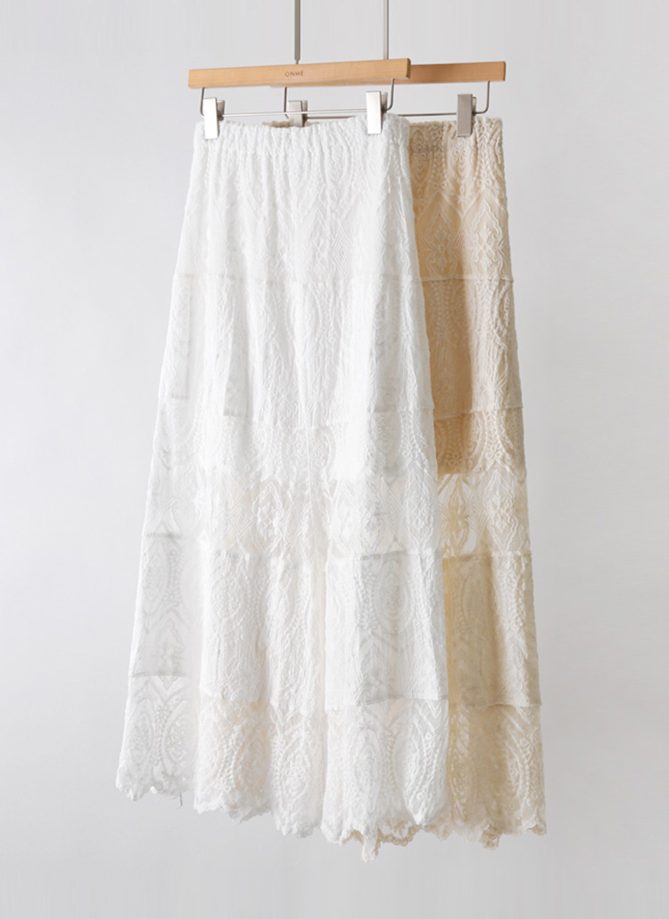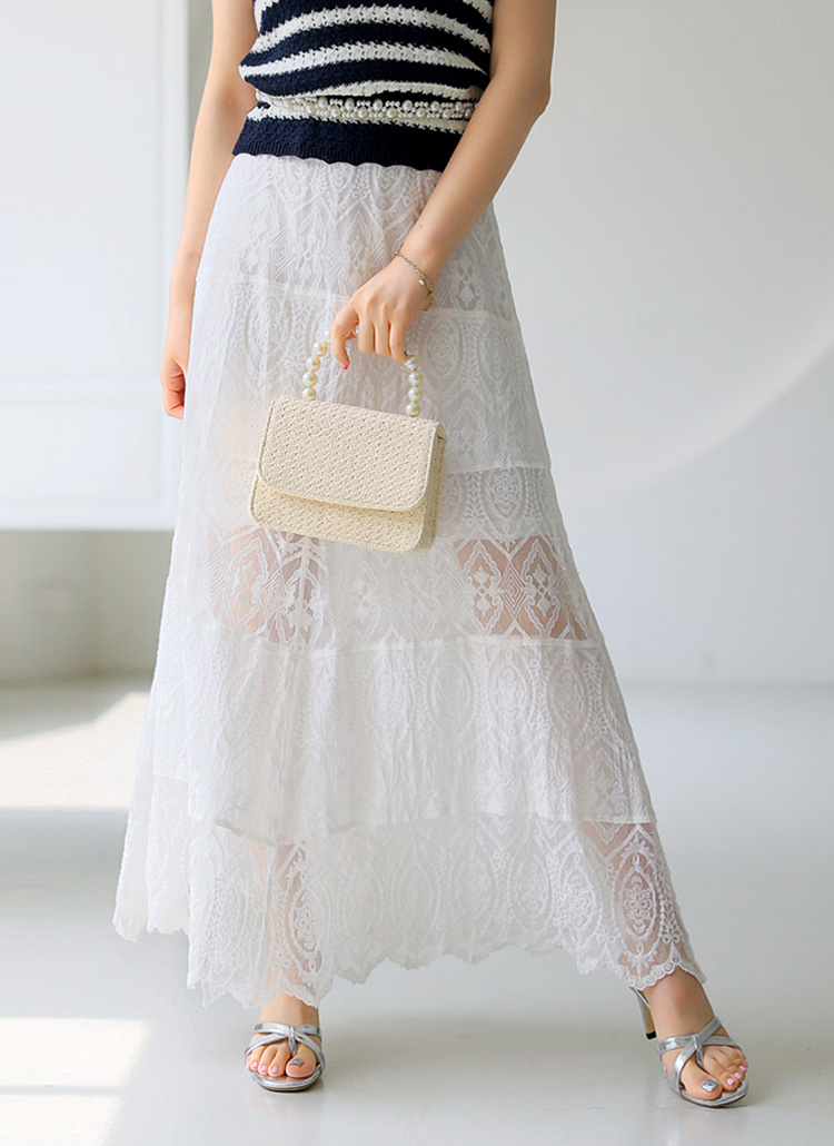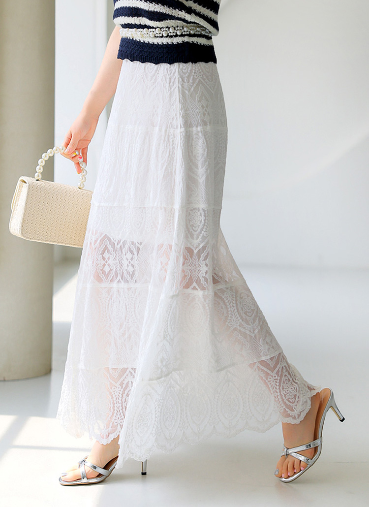 엘리샤 시스루 캉캉 배색 자수 레이스 A라인 롱 플레어 스커트