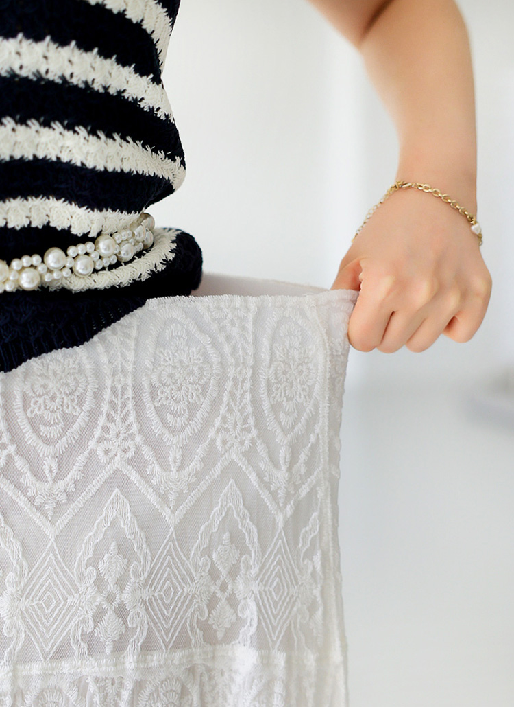 시스루 캉캉 배색과 자수 레이스가 매력적인