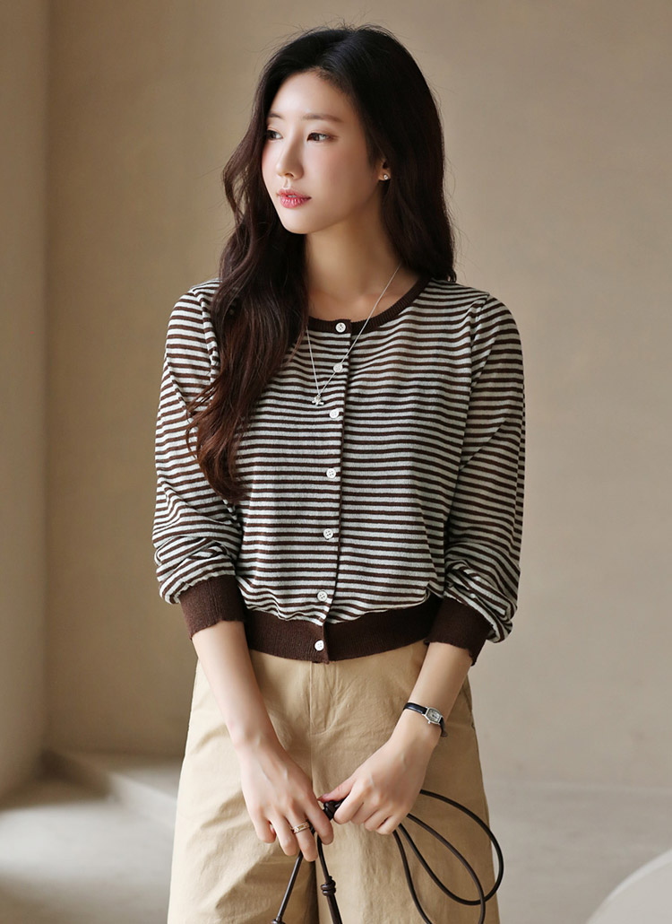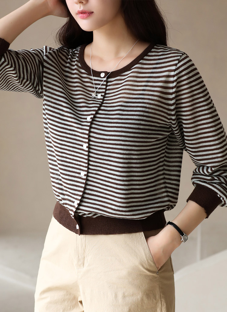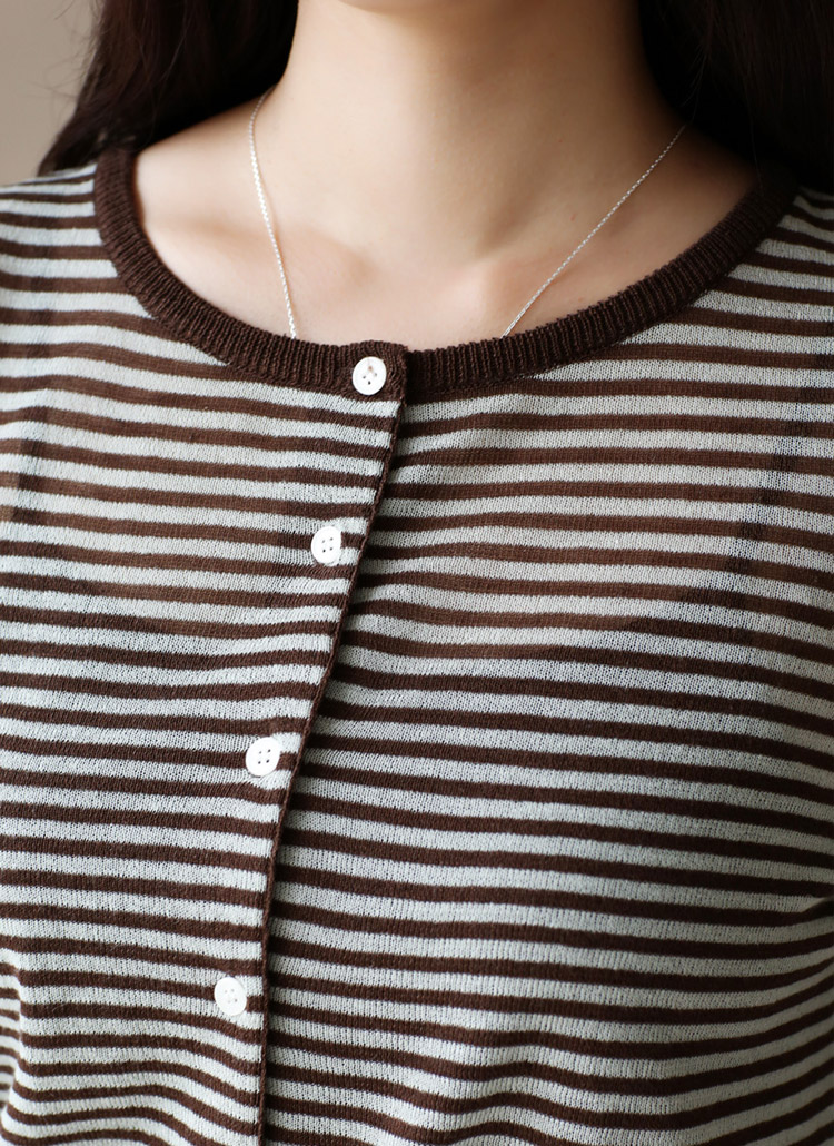 로엘티 린넨 라이트 배색 스트라이프 니트 가디건