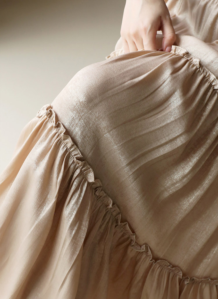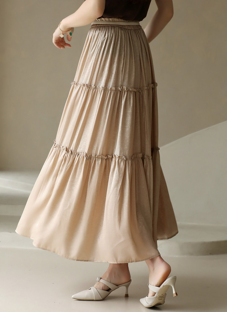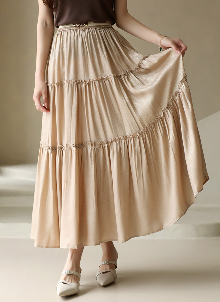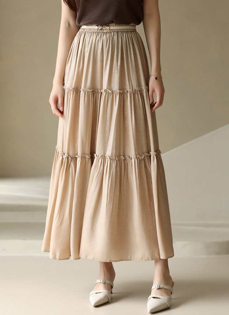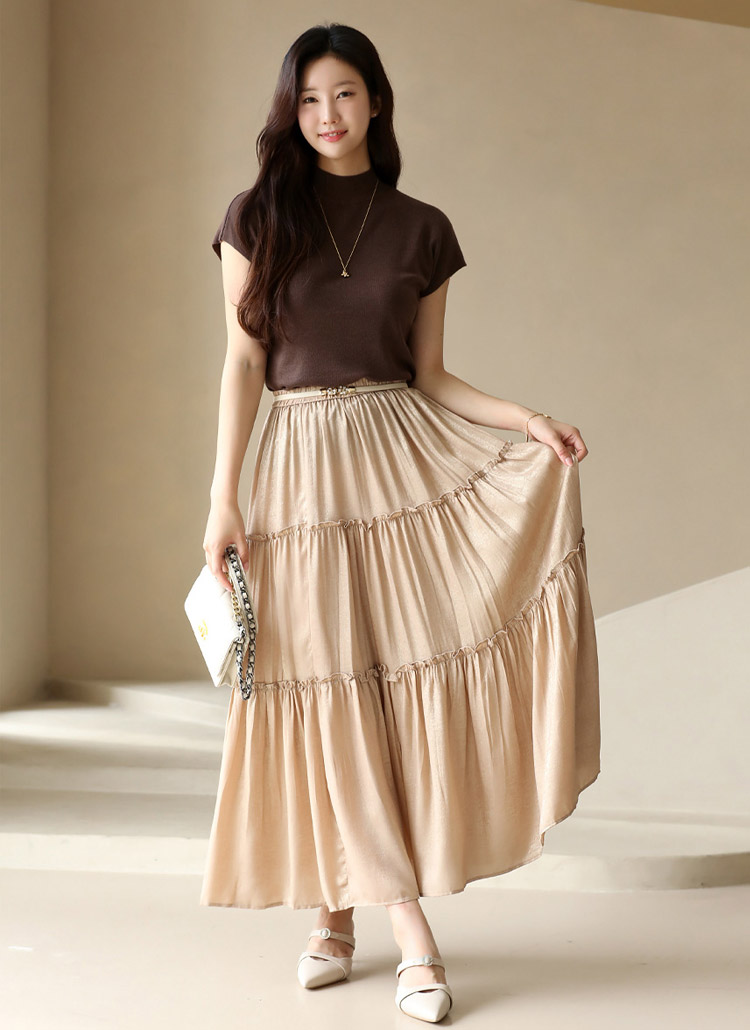 벨루오 펄 샤인 프릴 캉캉 플레어 밴딩 스커트