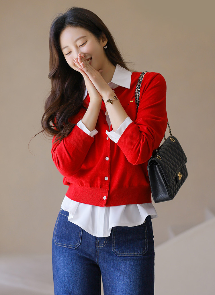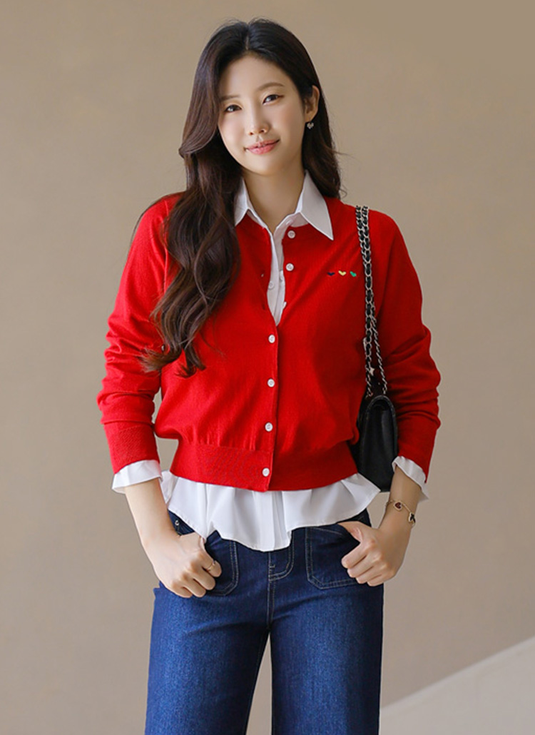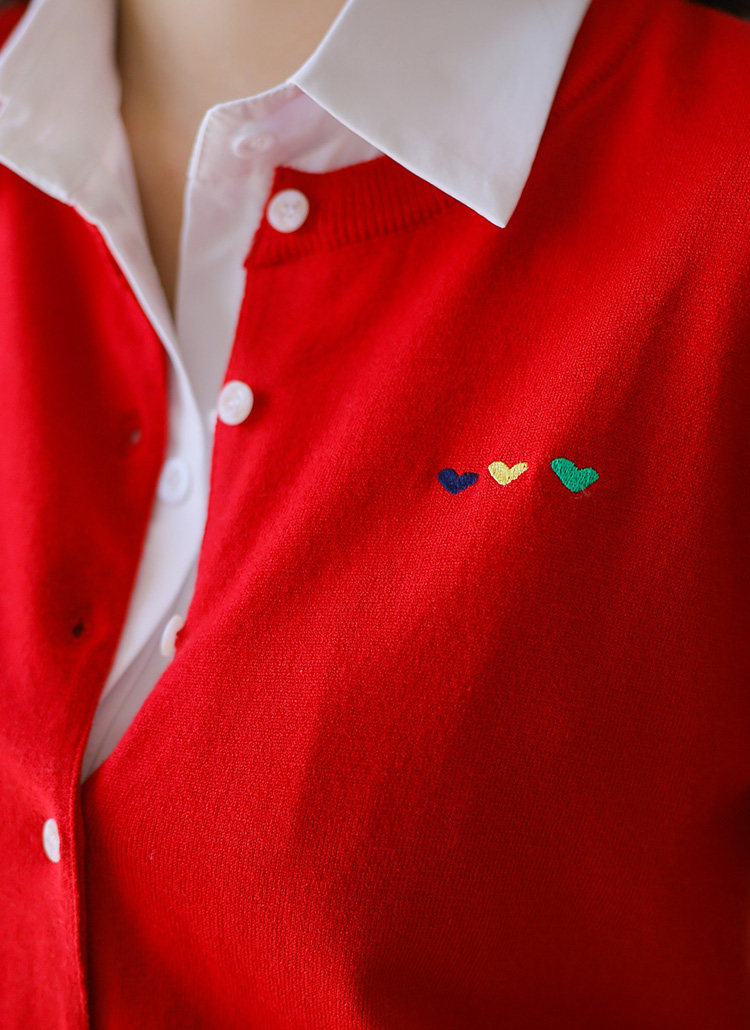 알록달록 사랑스러운 하트 자수 포인트 라운드 가디건