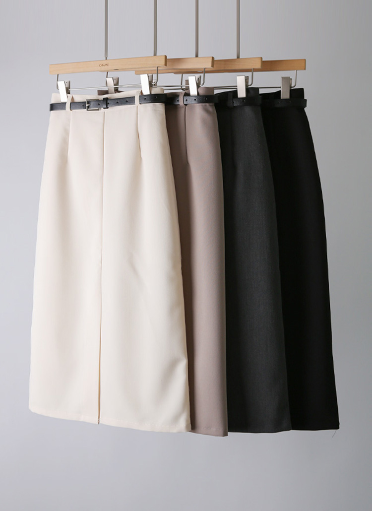 모노먼 심플 슬림 벨트SET 앞 트임 H라인 롱 펜슬 스커트