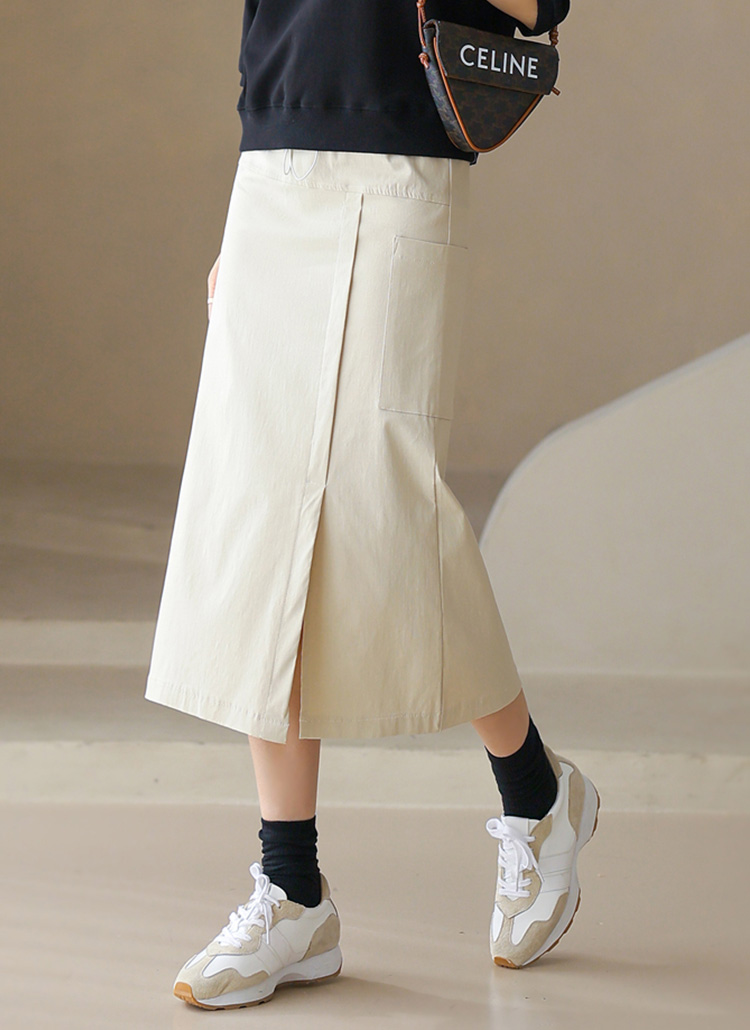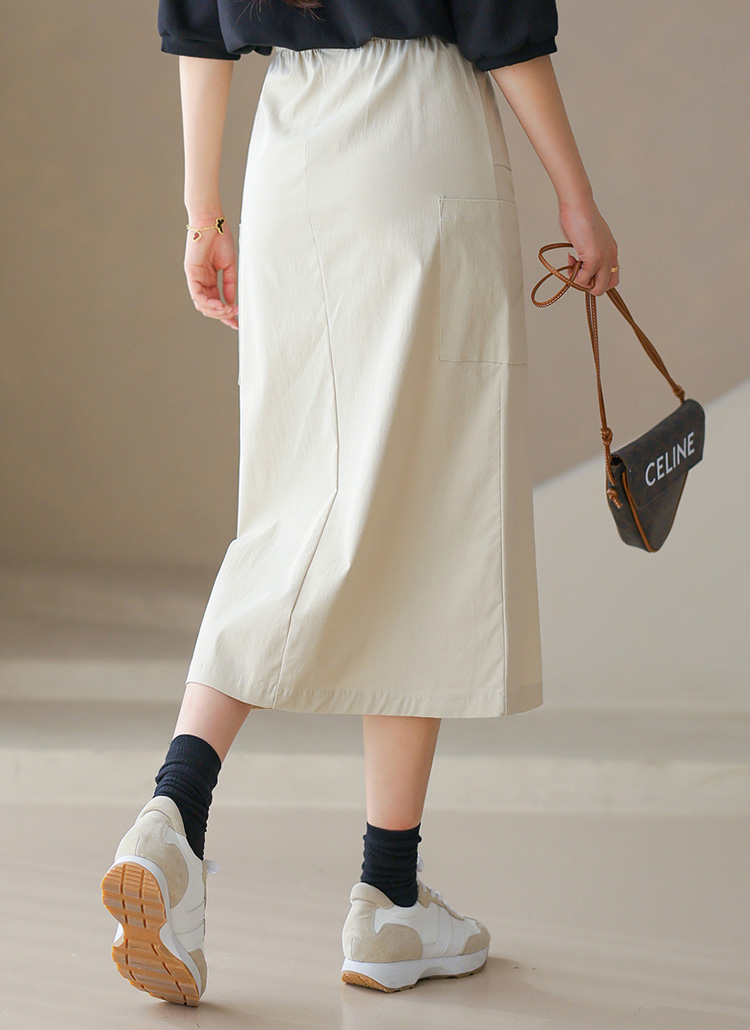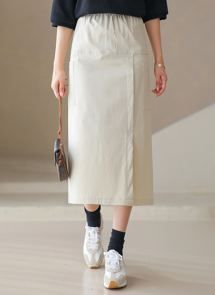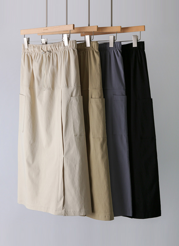블리도 바스락 사이드 트임 허리 스트링 밴딩 H라인 롱 스커트