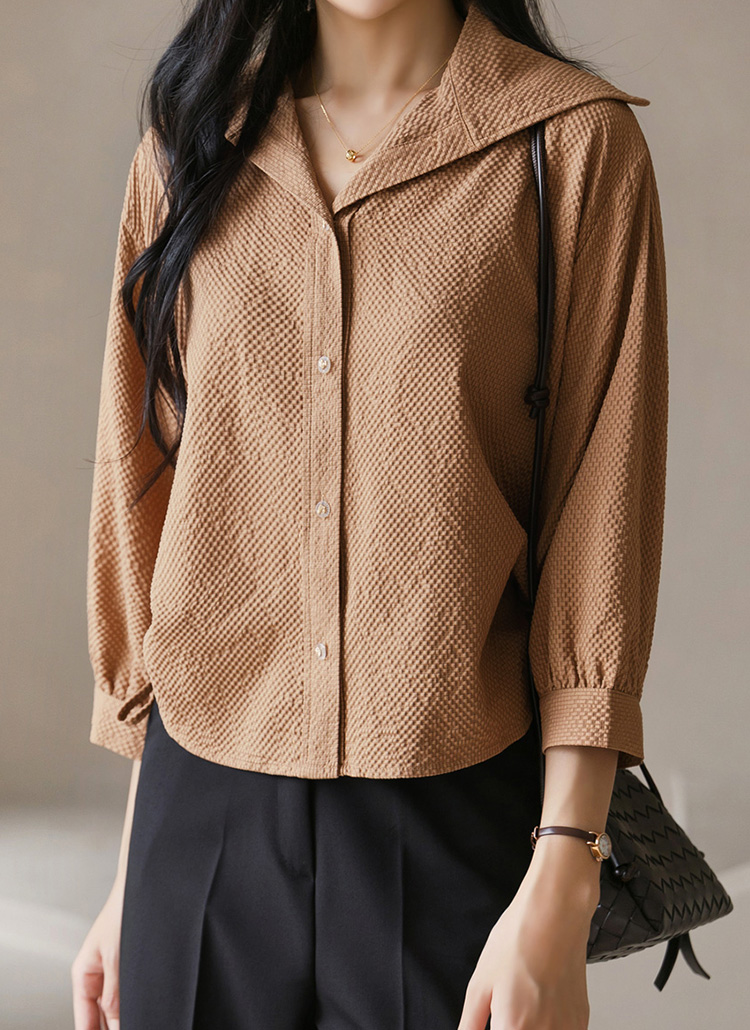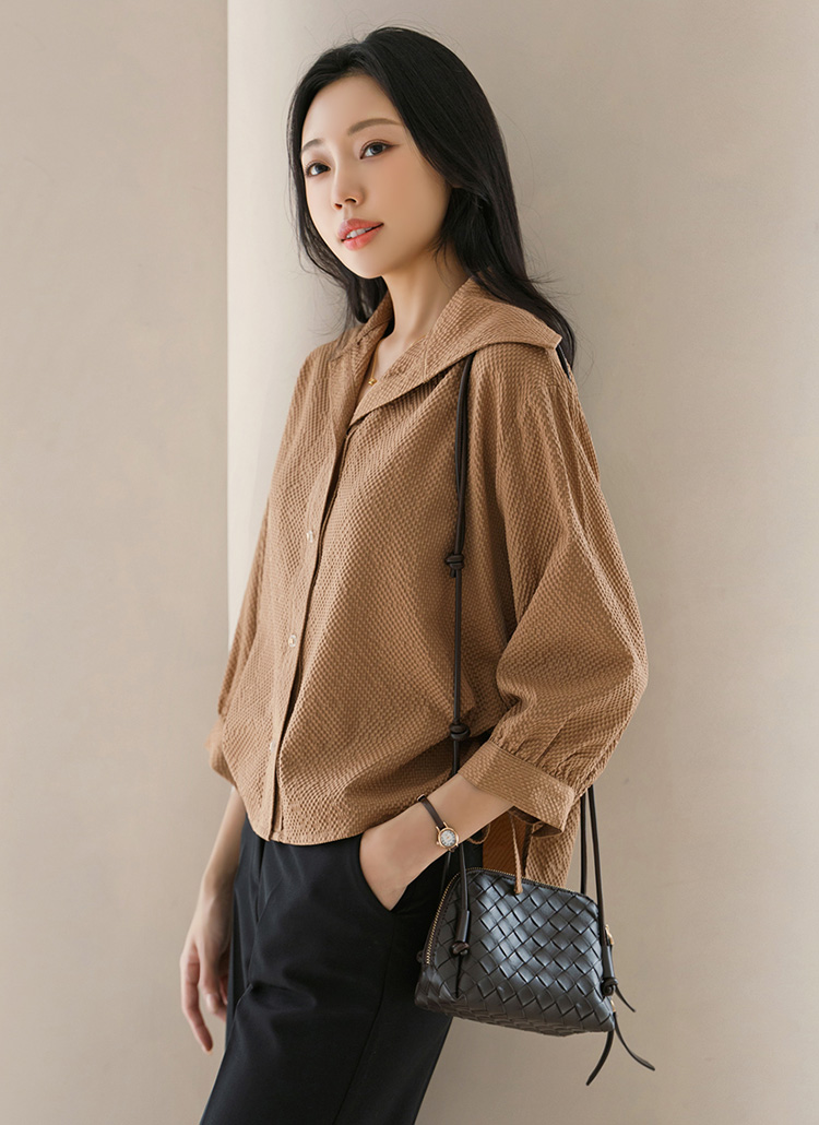 볼륨감 있는 7부 퍼프소매 엠보 블라우스에요 :)