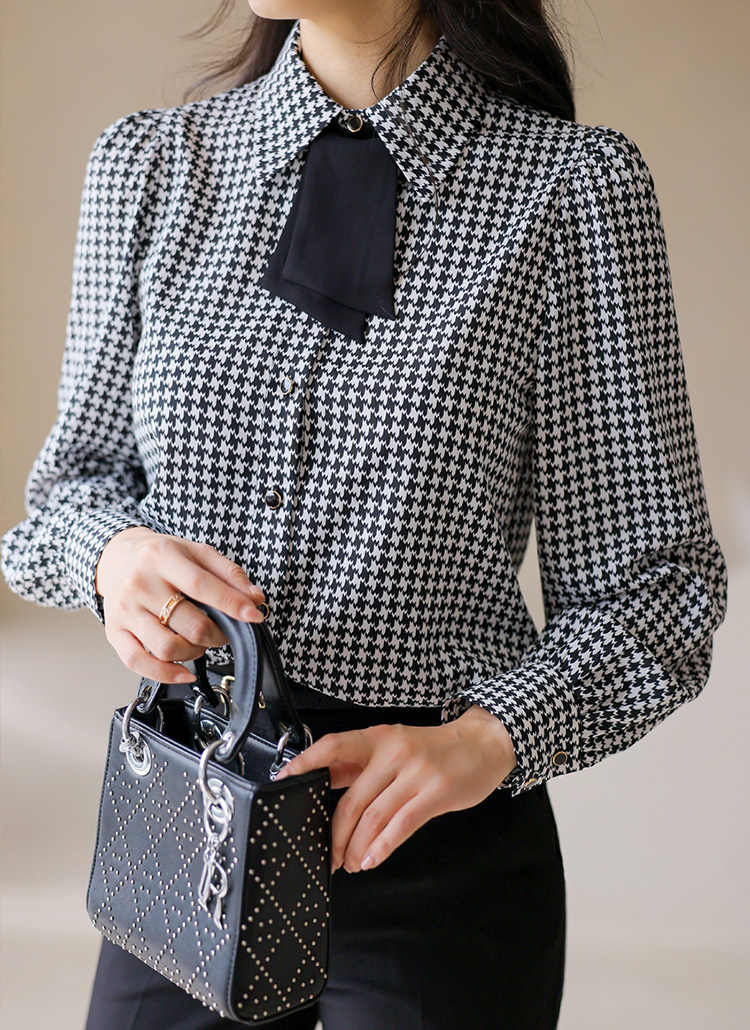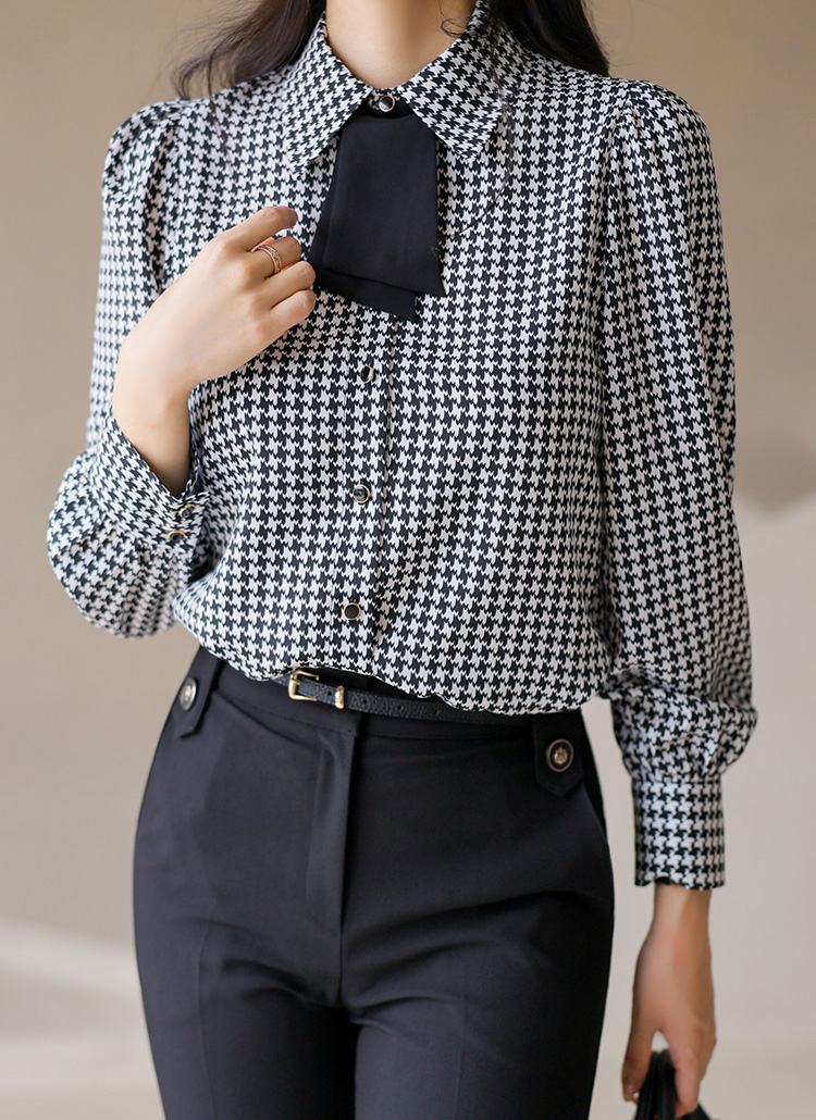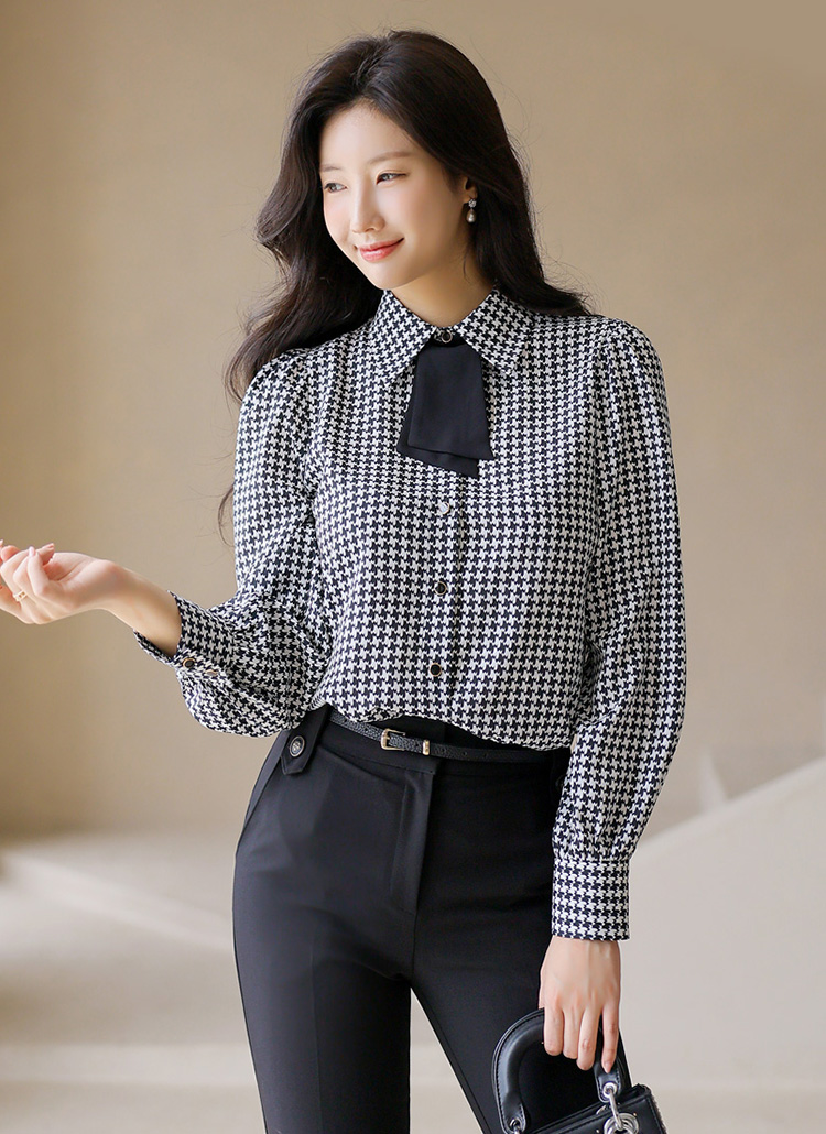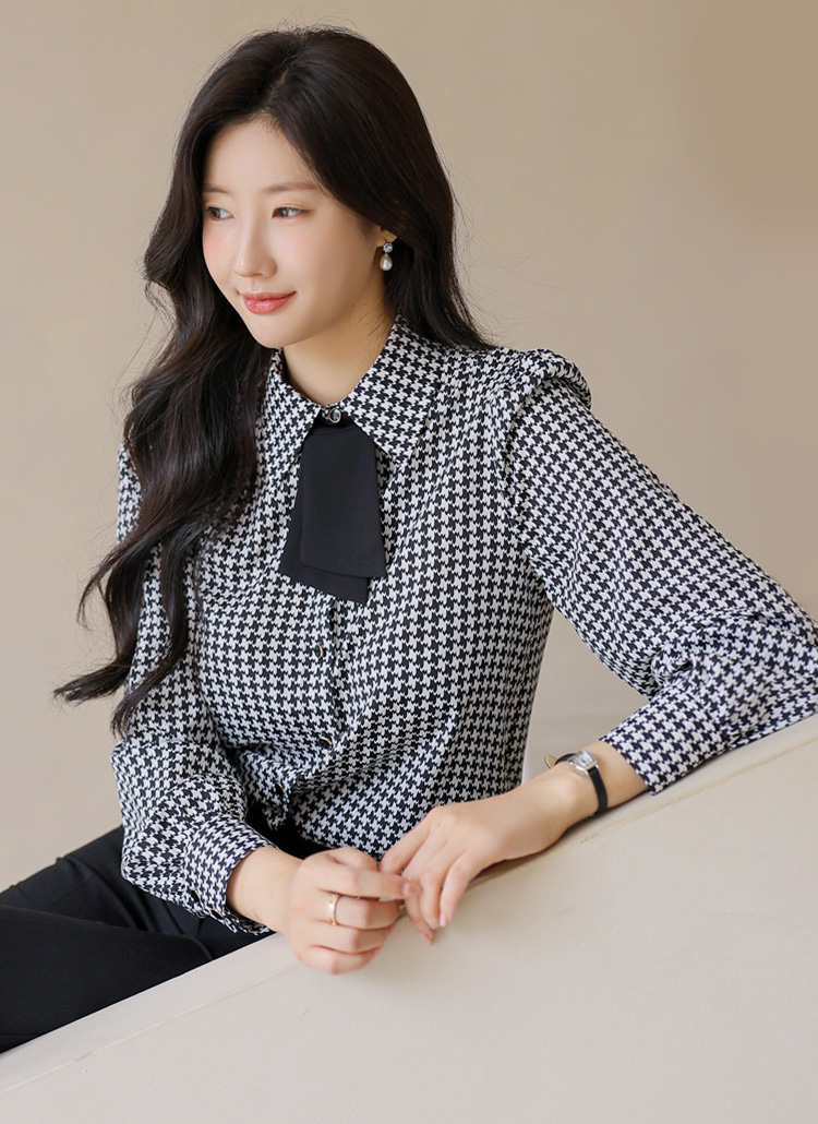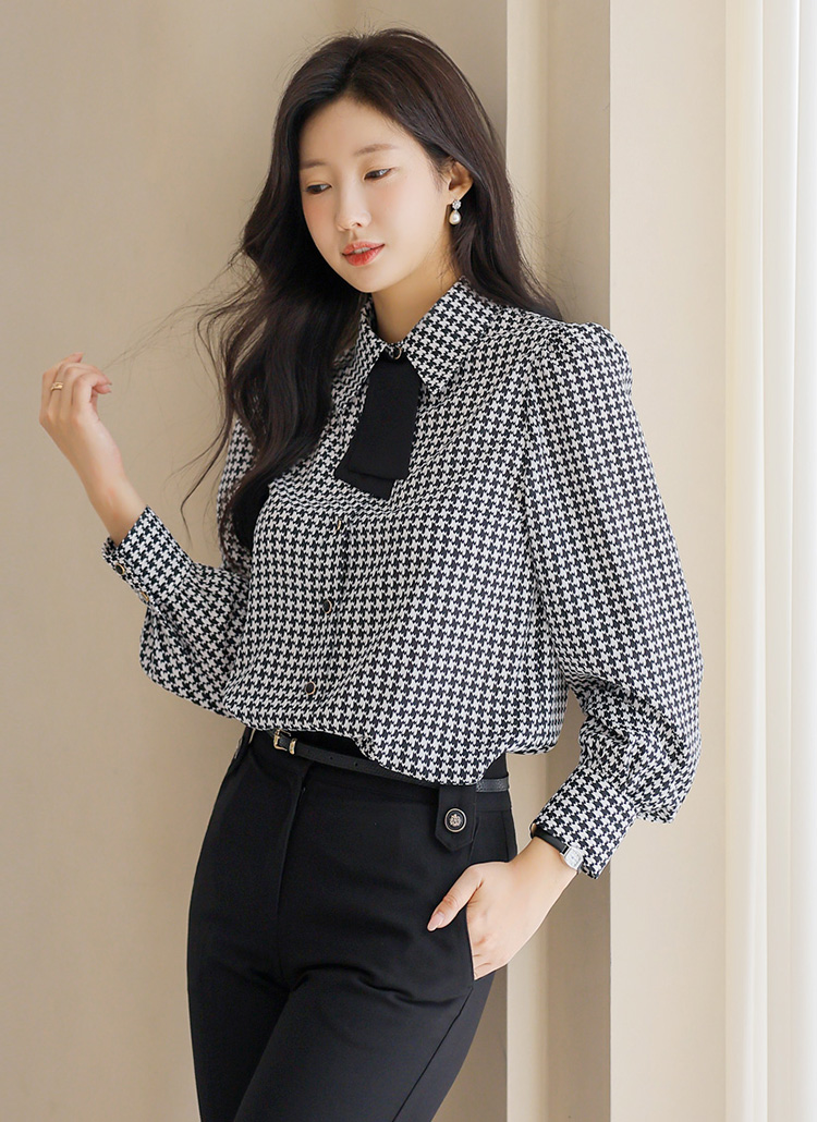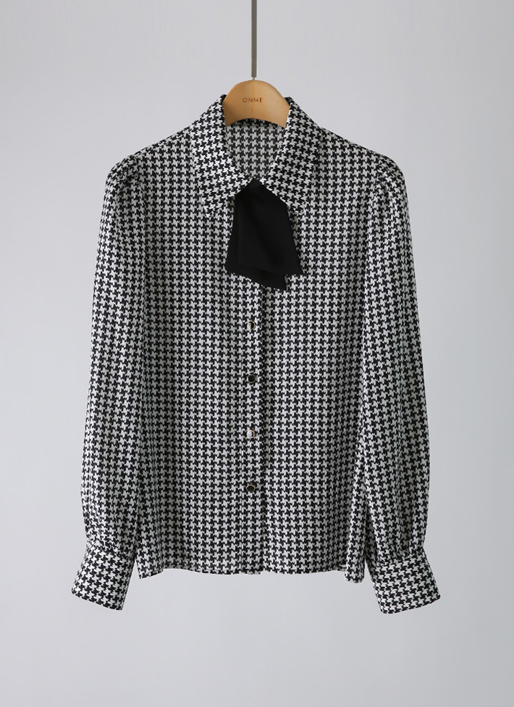[LouisAngel] 플리에 타이SET 하운드 체크 카라 블라우스