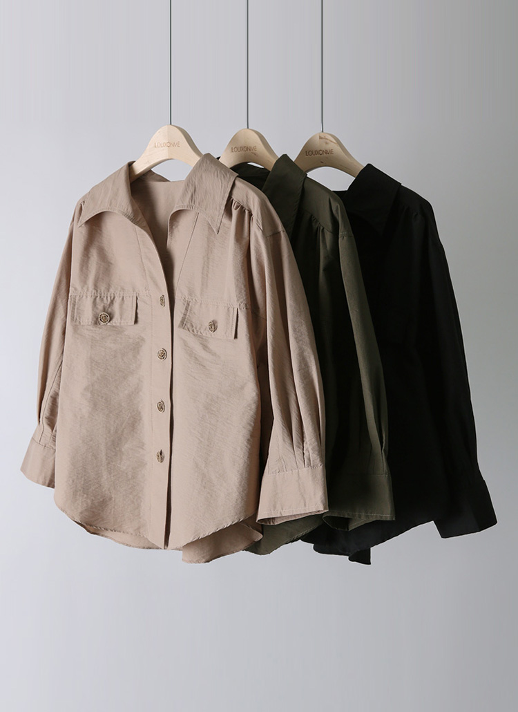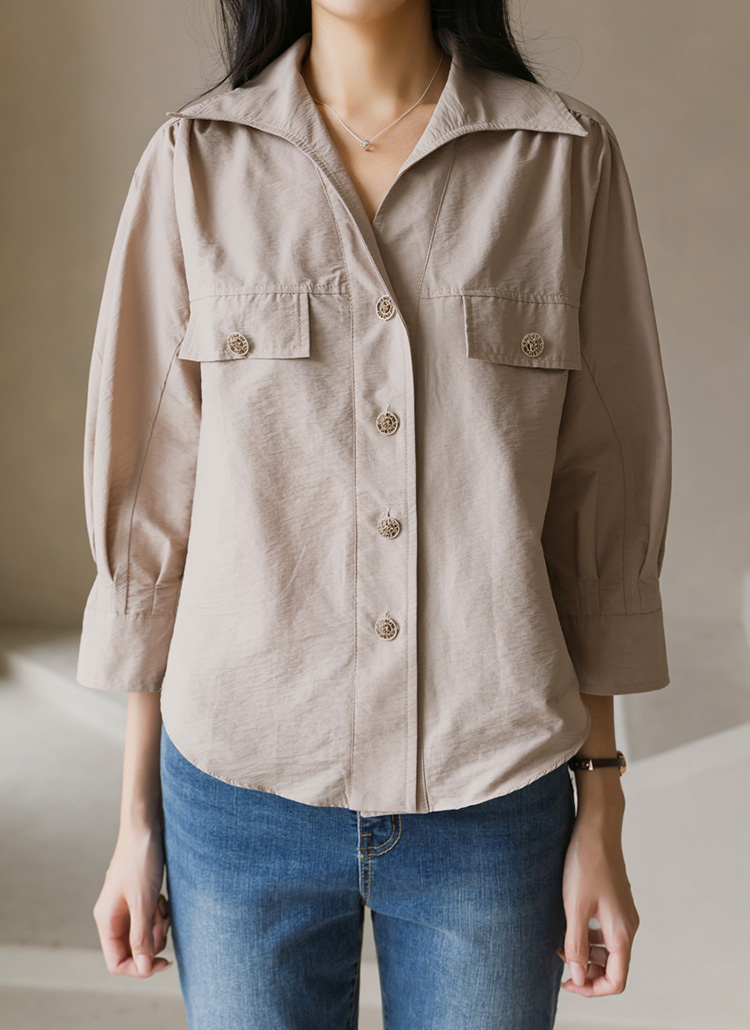 [Theonme] 브에티 사락 나일론 카라 7부 셔츠 블라우스