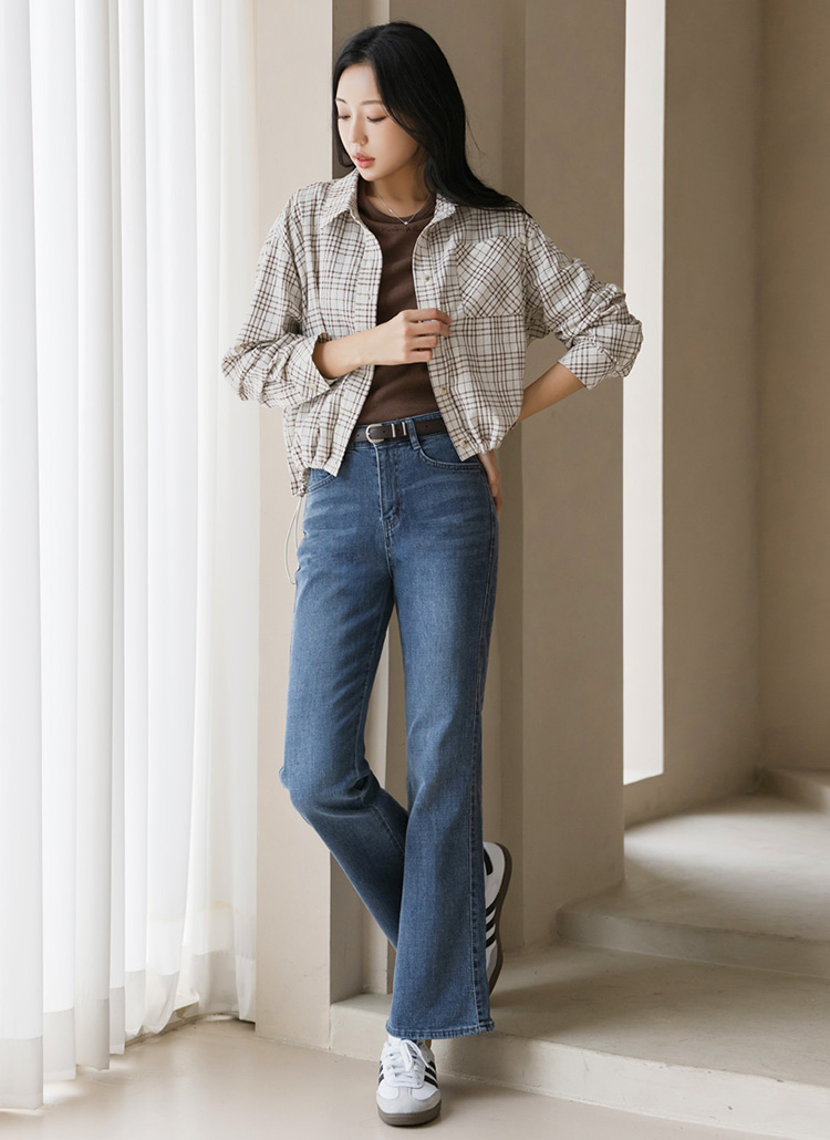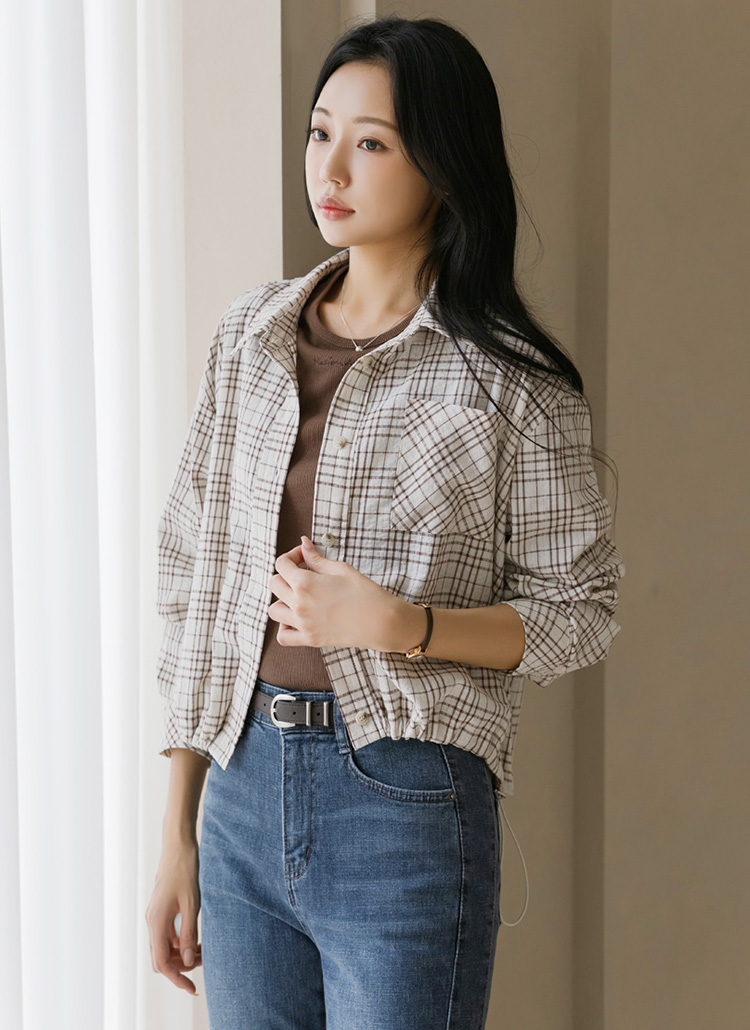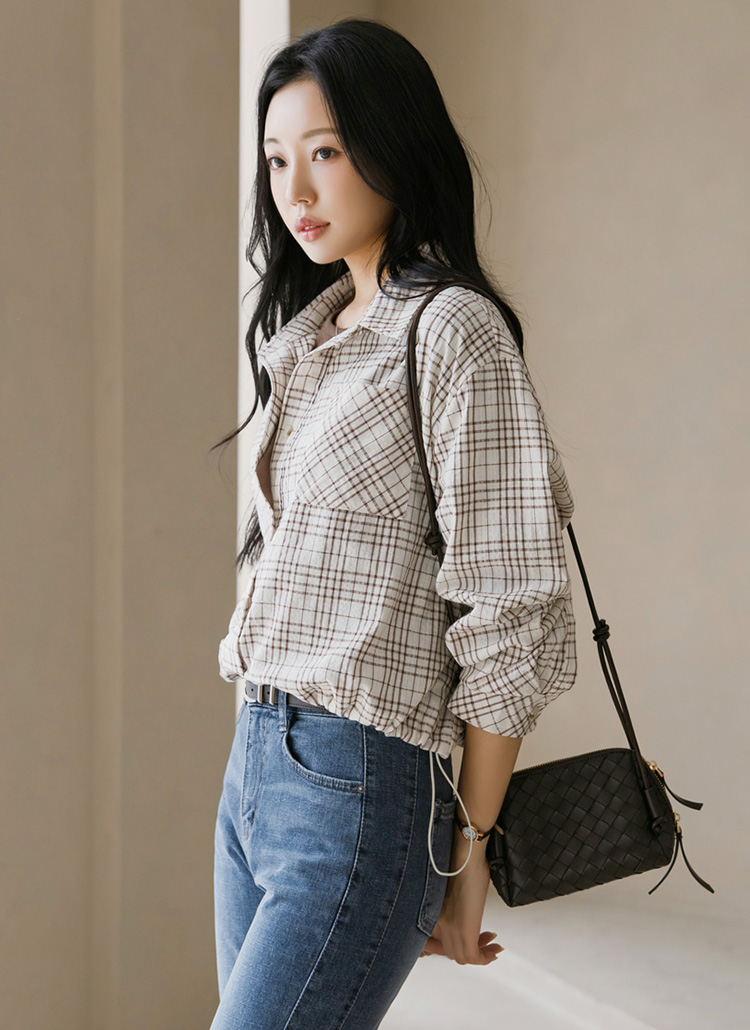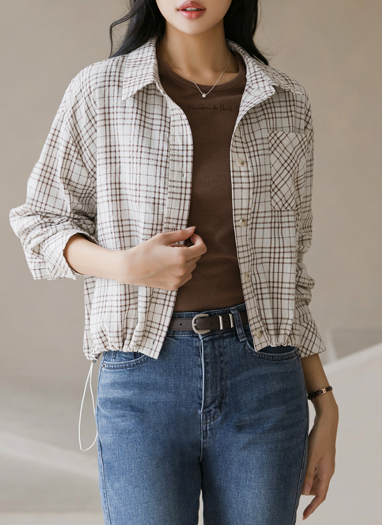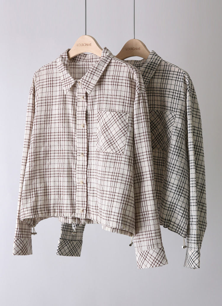 [Theonme] 올레비 밑단 스트링 캐주얼 체크 셔츠