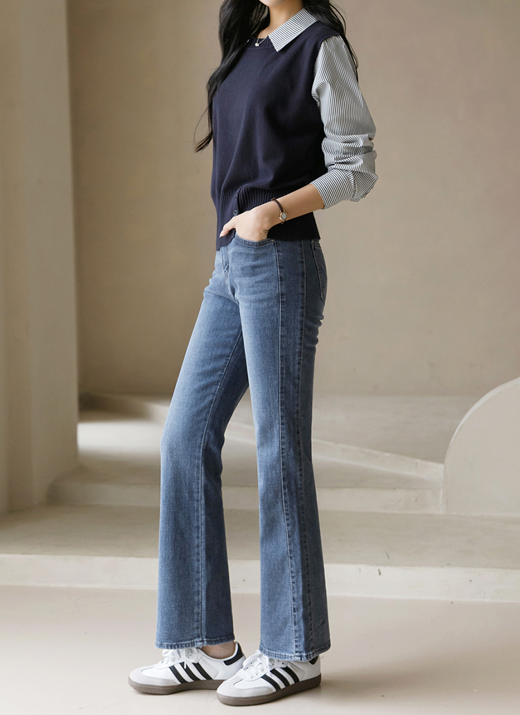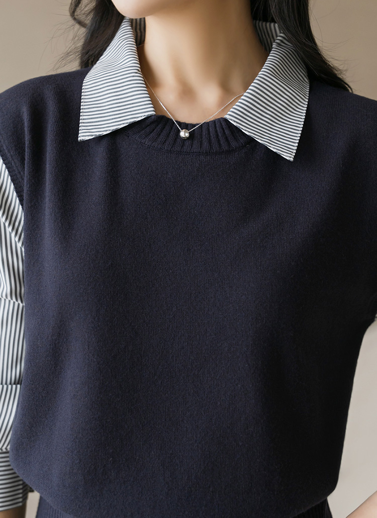 조끼 베스트와 스트라이프 셔츠가 레이어드된 디자인으로