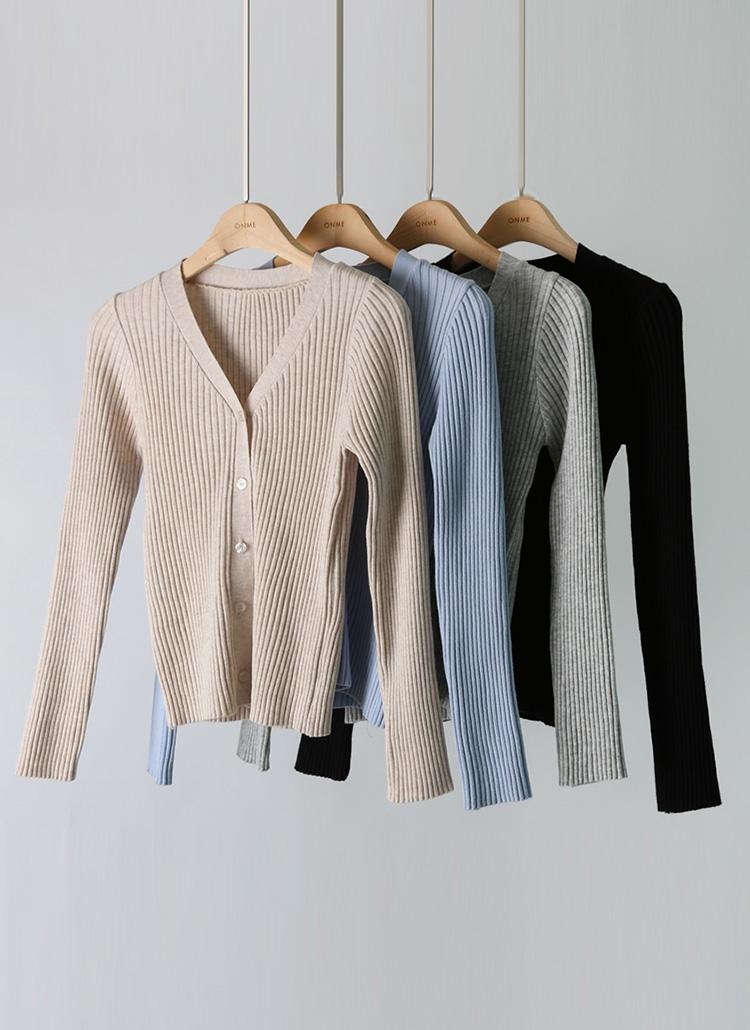 심플한 디자인에 슬림한 핏으로 어디에나 매치하기 좋은 베이직 V넥 가디건이에요 :)
