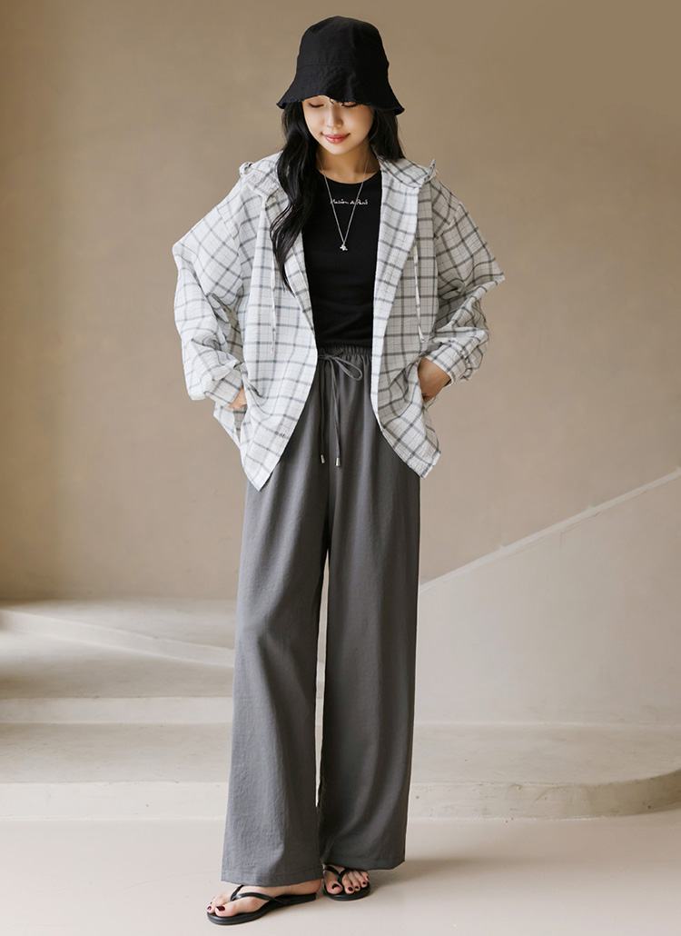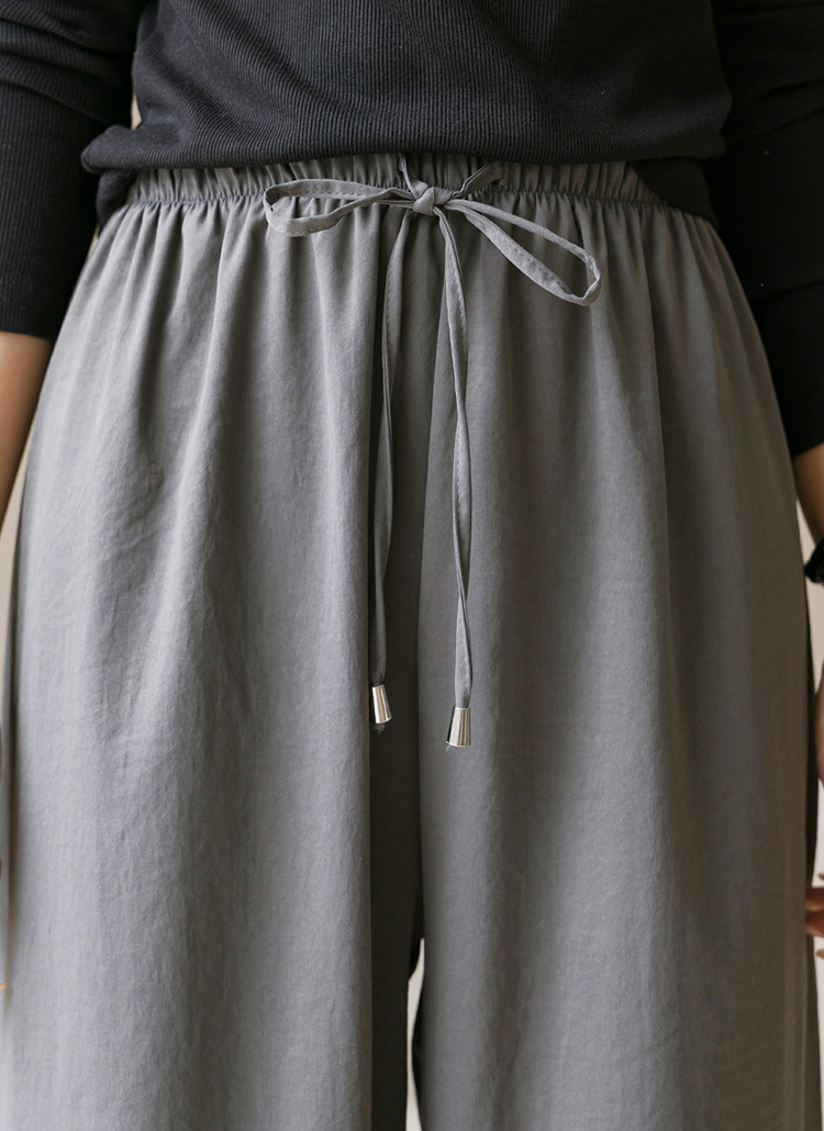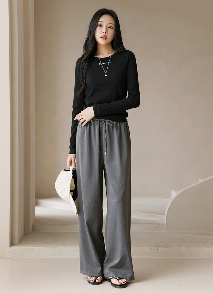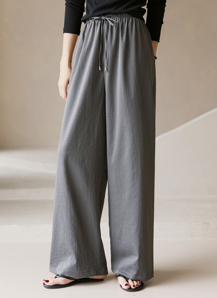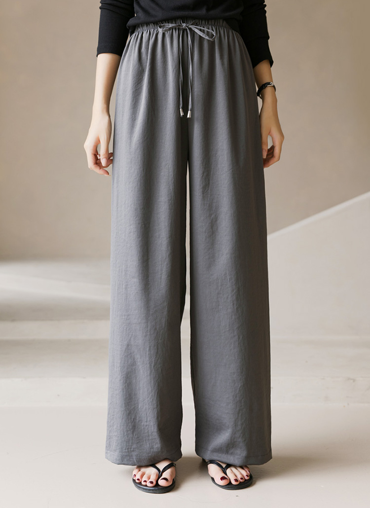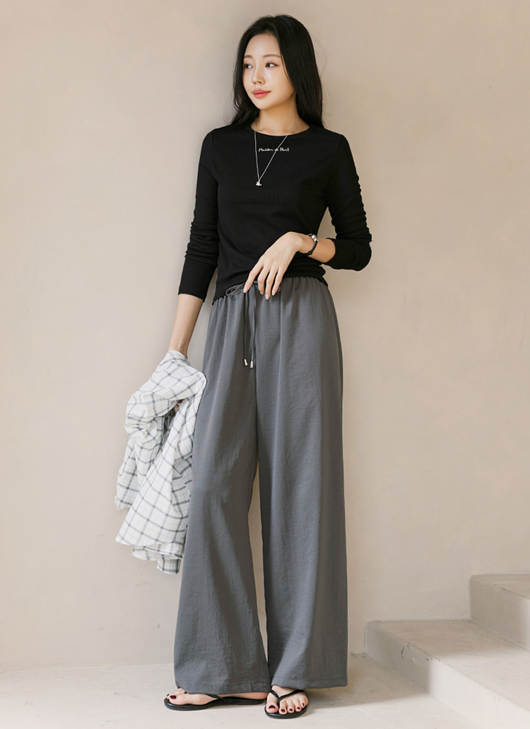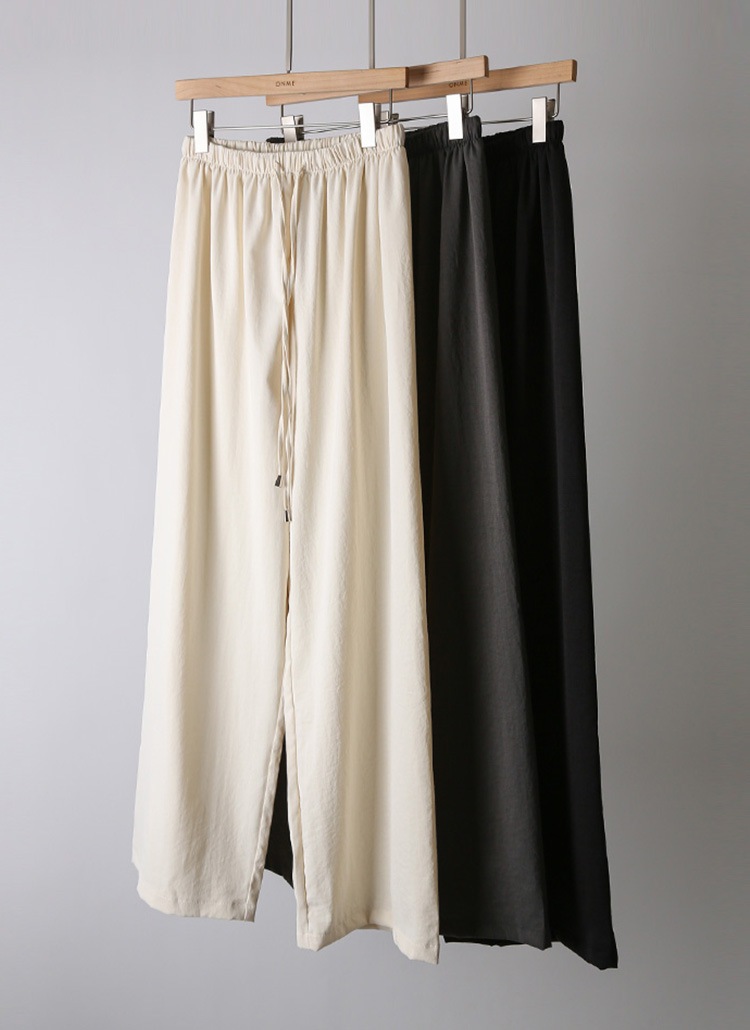 가볍고 편안한 원단으로 제작된 데일리 와이드 밴딩 팬츠에요 :)