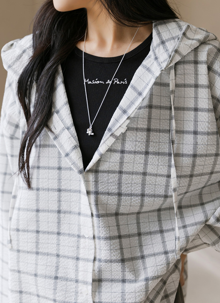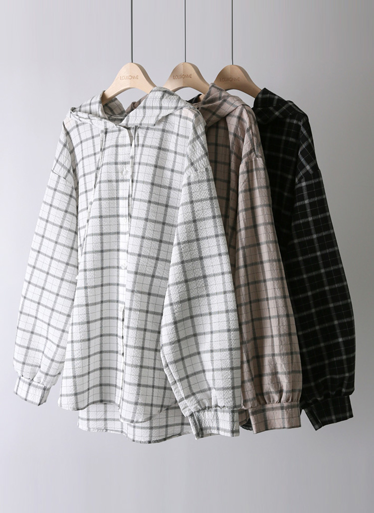 [Theonme] 사엘로 오버핏 체크 라이트 후드 셔츠