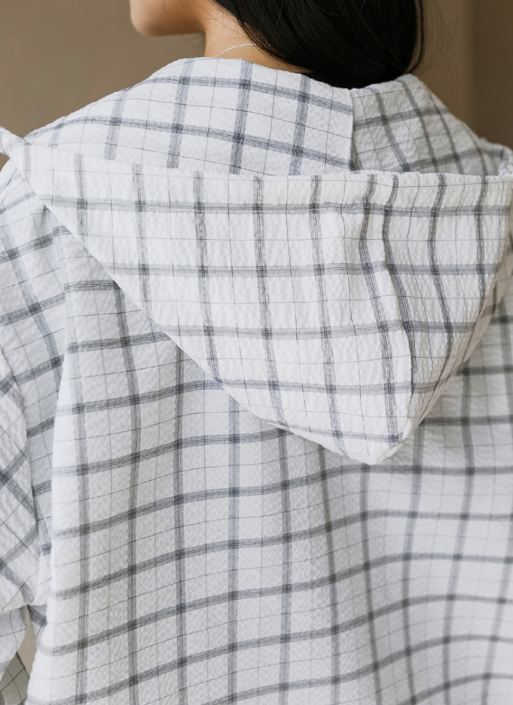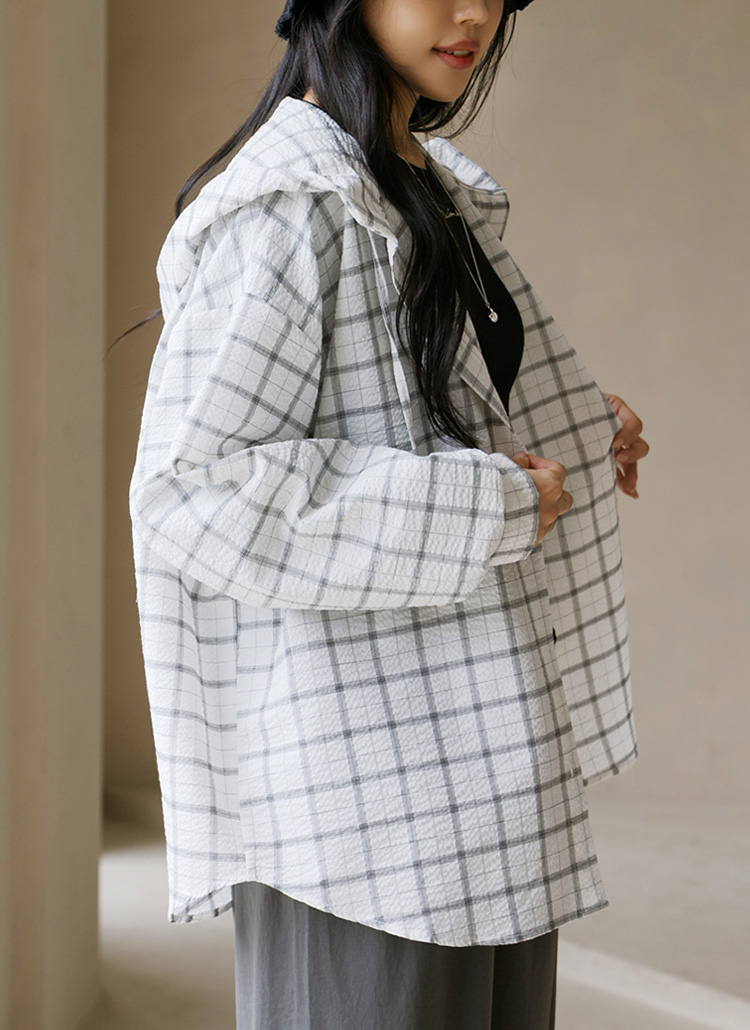 [Theonme] 사엘로 오버핏 체크 라이트 후드 셔츠